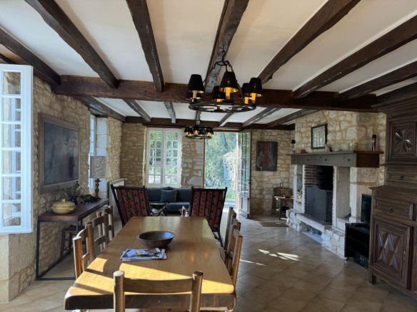 À seulement 15 minutes de Sarlat et à proximité immédiate d’un village pittoresque bordé par la Dordogne, cette belle propriété se situe au c?ur d’un cadre naturel préservé, offrant un environnement paisible sans nuisances, en parfaite harmonie avec la campagne environnante. Sur un terrain d’environ 1,6 hectare, cet ensemble se compose d’une maison principale rénovée, d’une dépendance à rafraîchir, d’une piscine et d’une noyeraie.