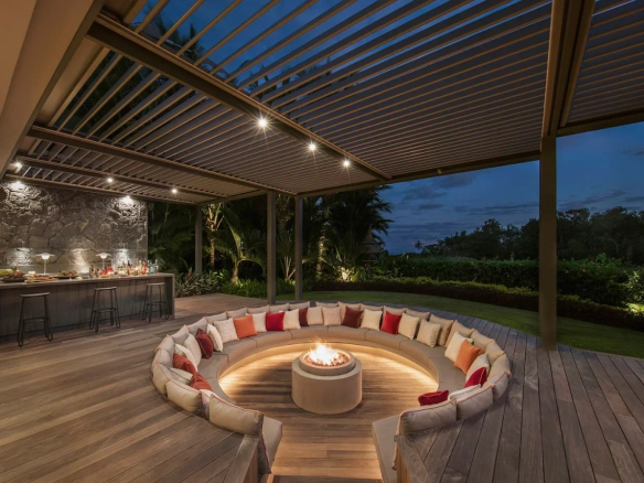 Découvrez cette villa d’exception de 904 m² à vendre au cœur de l’Anahita Golf Resort, avec vue sur le lagon, le golf et les montagnes. 6 chambres, piscine.