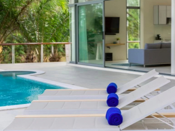 Les propriétaires d’Oasis Samui choisissent généralement l’un des ensembles de conception de mobilier d’intérieur élégant (et fonctionnel) fourni par l’équipe de développement.