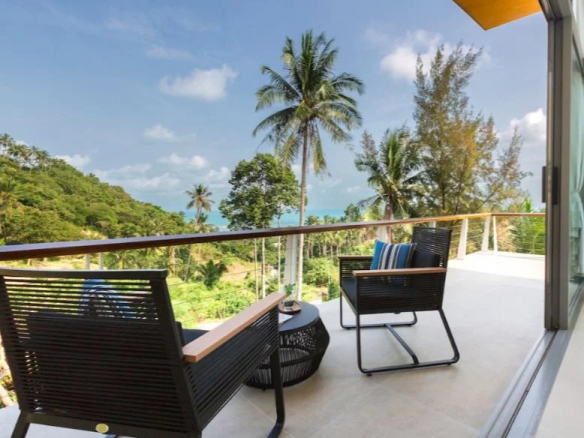 Oasis Samui – un domaine privé de villas de luxe avec piscine, situé dans un cadre tropical luxuriant de cocotiers avec vue sur la mer bleue turquoise de Lamai .