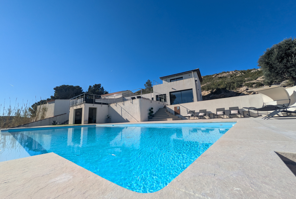Entre mer et pinède, un écrin de sérénité. À deux pas des calanques, cette villa offre un cadre de vie rare, baigné de lumière et de nature. Ici, on vit au rythme des saisons, entre le chant des cigales et la vue sur la mer.