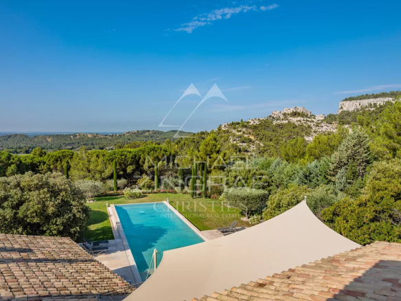 Située aux Baux de Provence, cette propriété d’exception d’environ 285m² offre une vue panoramique à couper le souffle sur la vallée environnante plantée d’oliviers et le fameux Château des Baux.