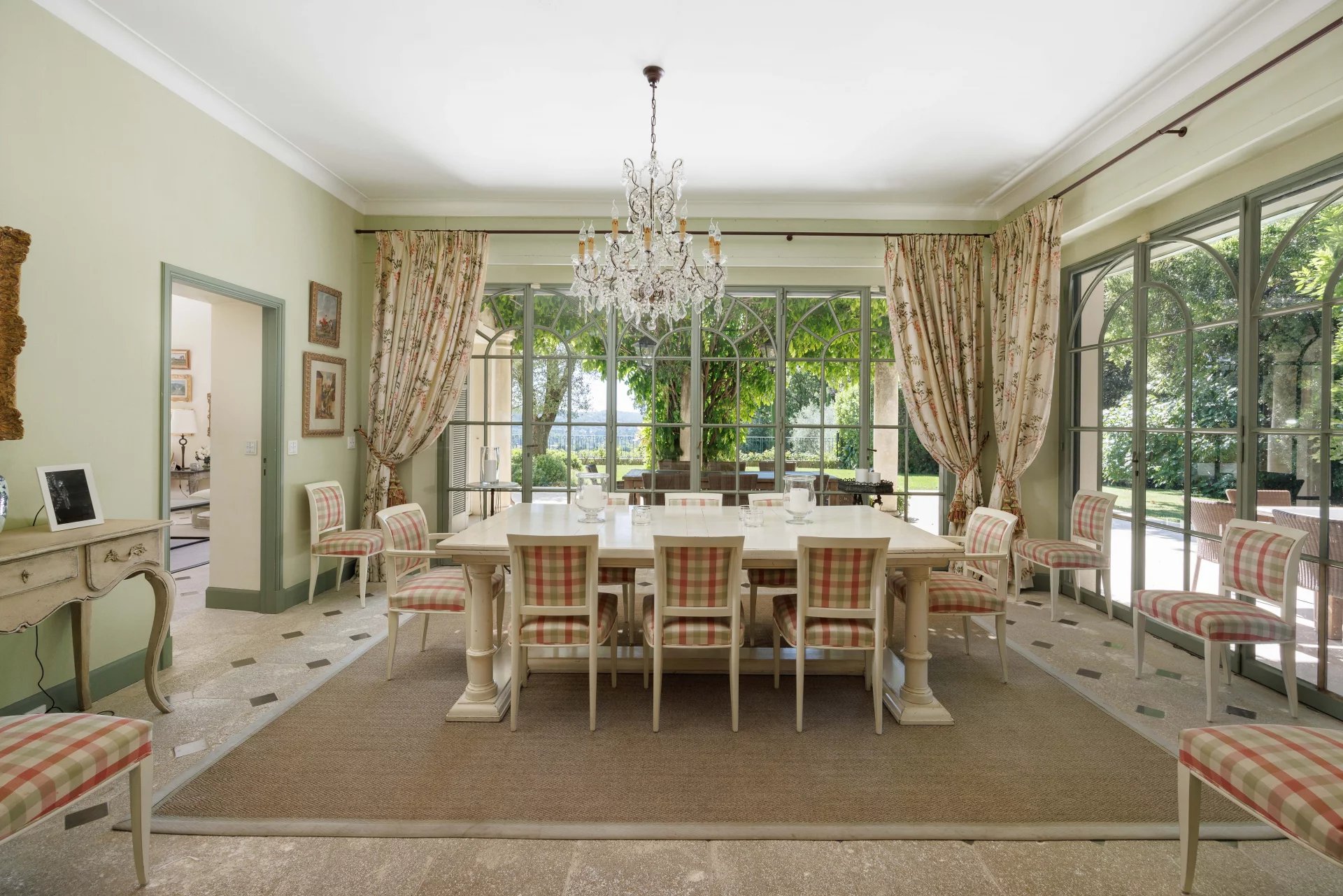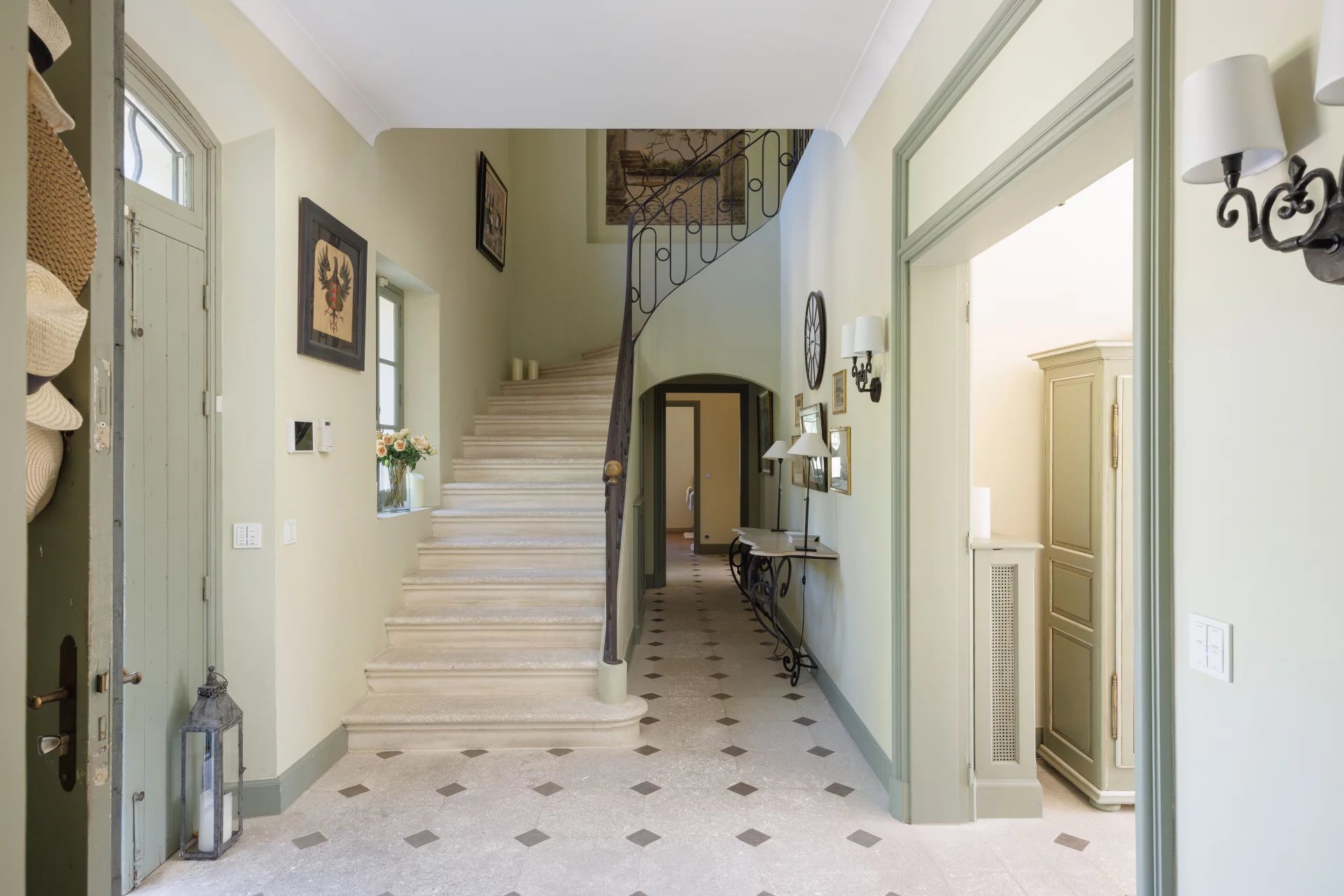 Sur un parc paysager d’environ un hectare, un chemin pavé en demi-cercle serpente entre les jardins soignés et un terrain de tennis green-set éclairé, menant à une bastide aixoise raffinée idéalement située en position dominante.
