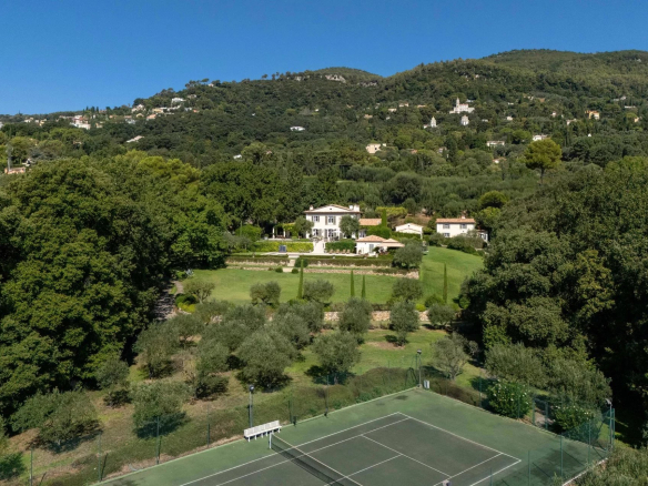 Propriété d’exception: Parc paysager de 1,1 ha avec bastide raffinée, piscine, tennis, maison d’amis et logement de gardien