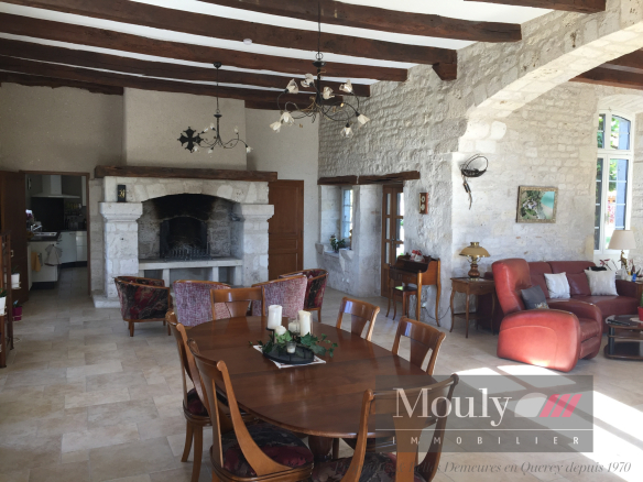 Maison principale de 300 m2 sur multiples caves voutées avec multiples terrasses, piscine, pigeonnier, grange, garage, maison d’amis, abris, cuisine d’été, chaufferie, terrain de pétanque, mini golf 9 trous, étang de pêche, abris bois, jardin potager, 3 boxes et cabane pour enfants.