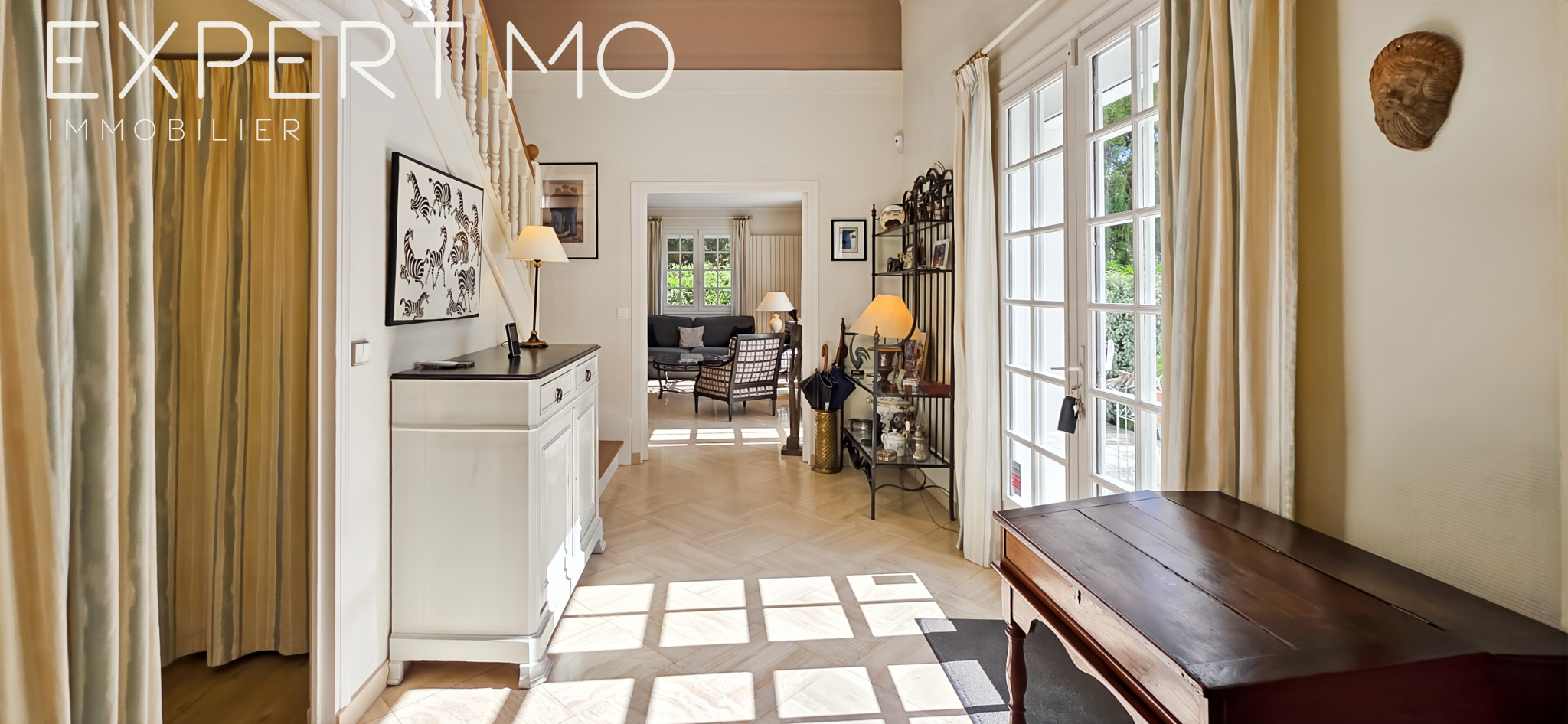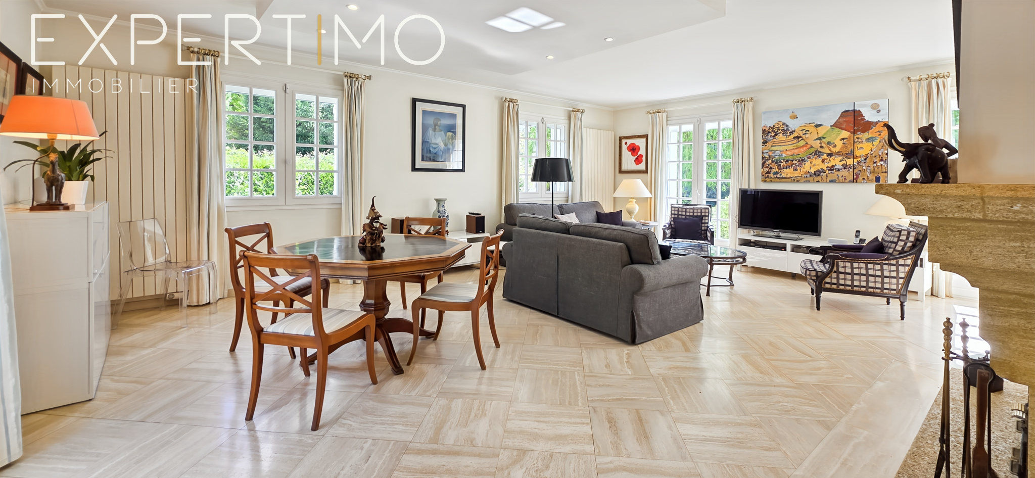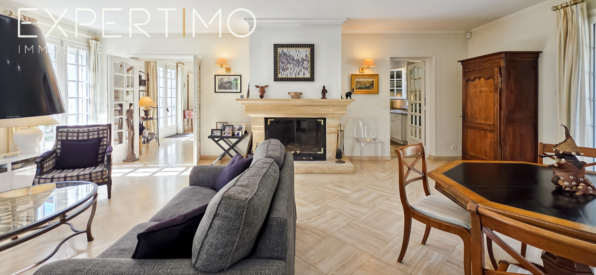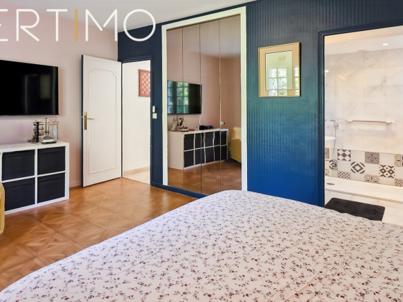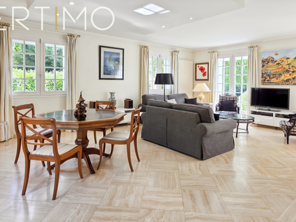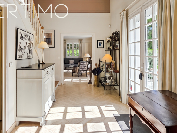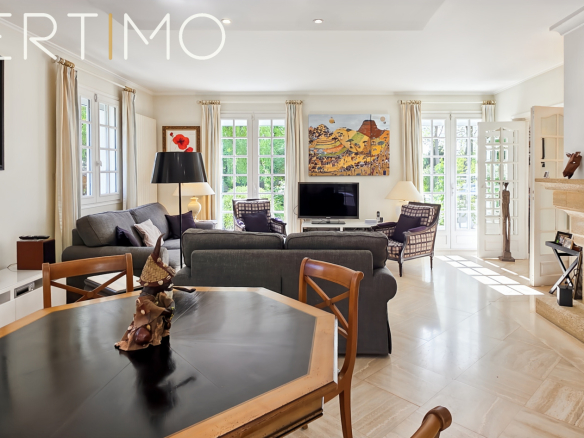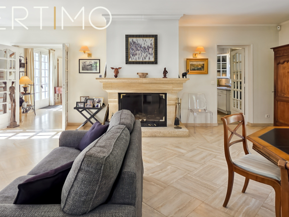 La maison développe 228 m2 habitables et séduit par la qualité de ses volumes, sa luminosité remarquable et son confort général. L’entrée élégante dessert un séjour traversant de 40 m2 avec cheminée, baigné de lumière grâce à sa triple exposition, avec accès direct aux terrasses et au jardin.