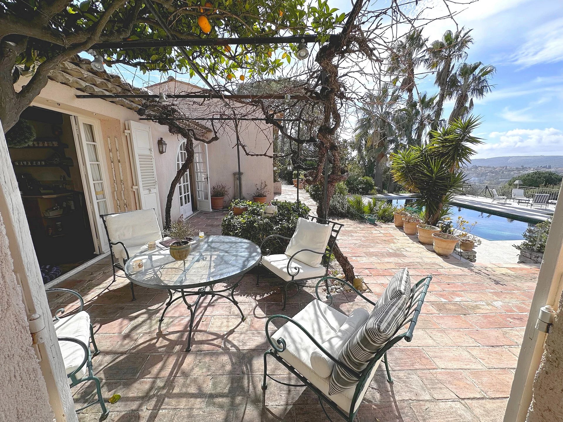 Au calme absolu, ancienne bergerie, proche du village de St Paul de Vence, bénéficiant d’une belle vue dégagée sur la campagne environnante.