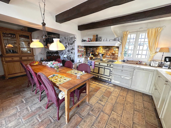 Exposée Sud-Ouest, pleine de charme (poutres apparentes, sols en terre cuite), elle se compose d’un salon avec cheminée, salon TV, une cuisine équipée, 5 chambres dont une complètement indépendante, 4 salles de douches/bains.