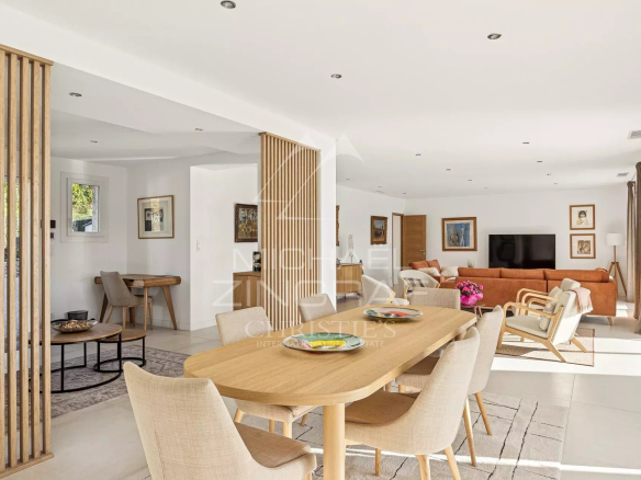 À l’intérieur, vous serez séduit par les beaux volumes qui composent l’espace de vie. Le vaste séjour s’ouvre sur une salle à manger lumineuse, créant une ambiance moderne et chaleureuse, idéale pour recevoir vos proches. Chaque pièce de vie principale donne accès à la terrasse, invitant ainsi à profiter des doux moments en extérieur.