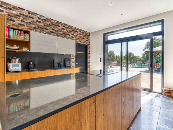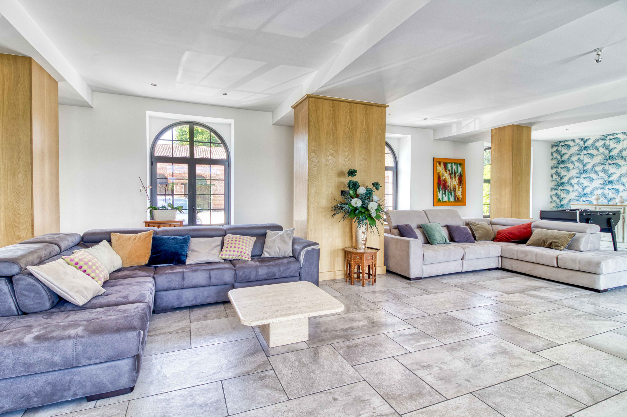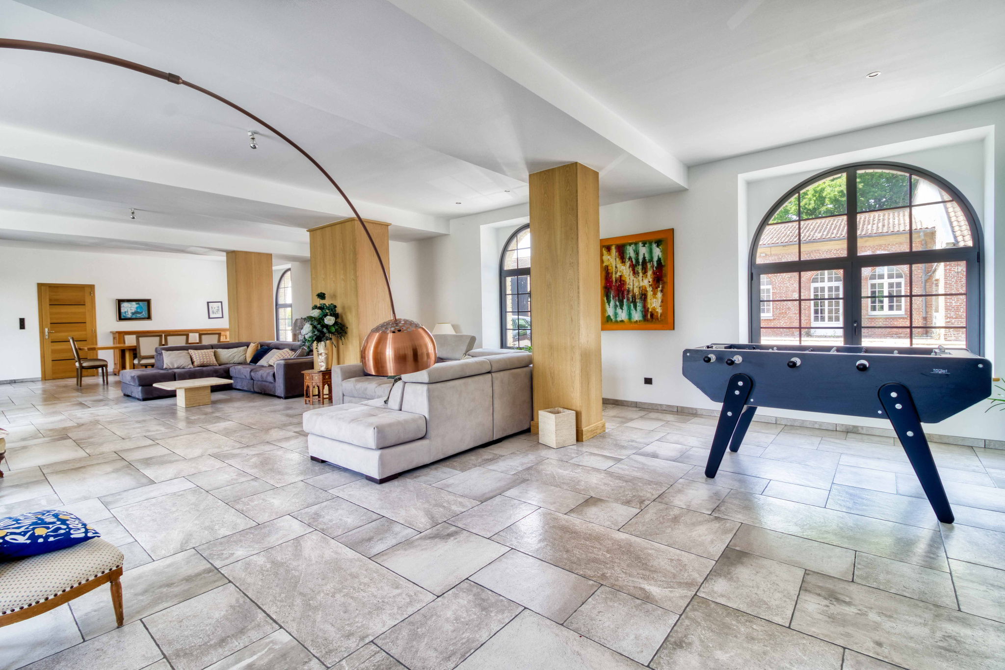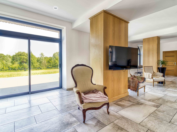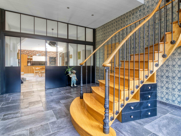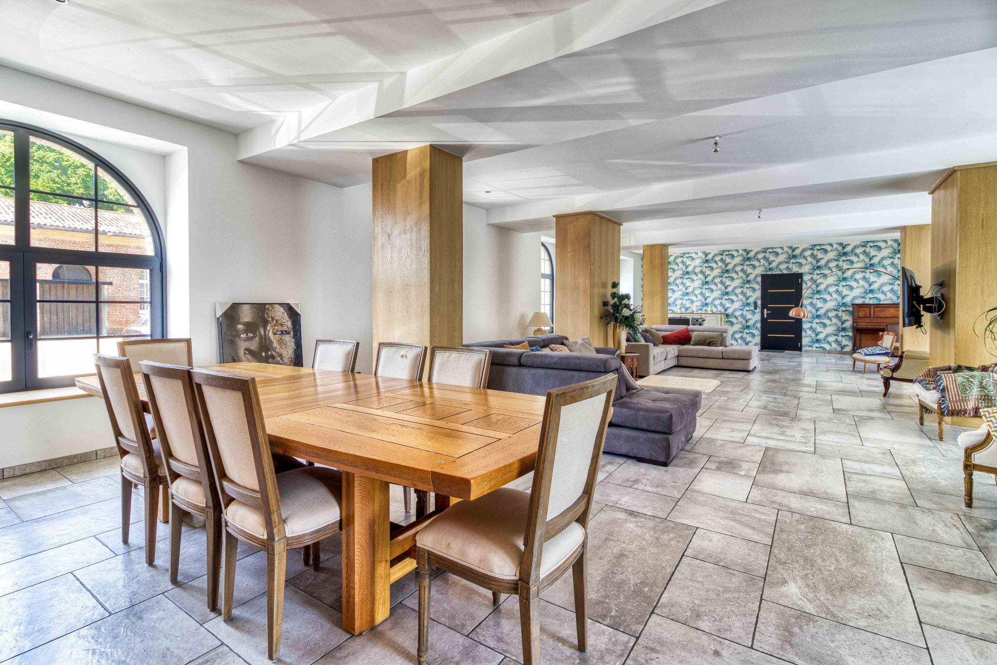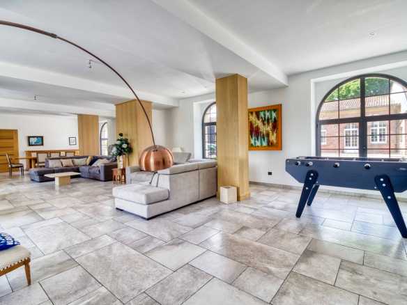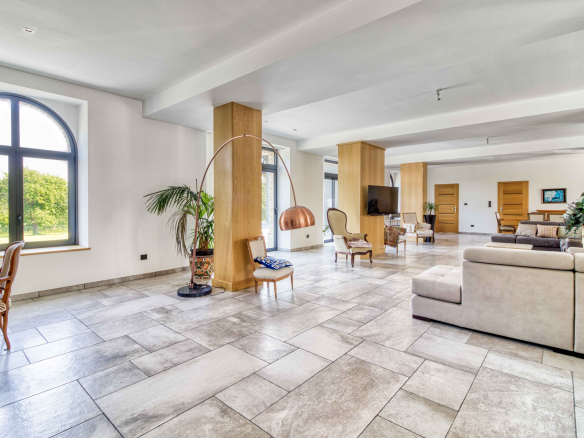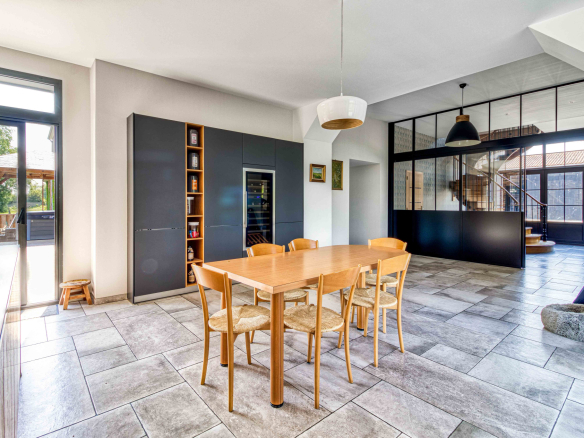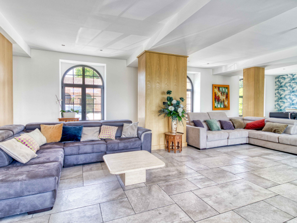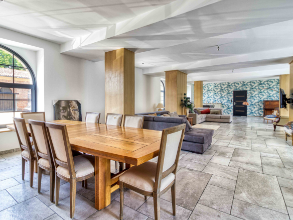 En premier lieu le magnifique Moulin entièrement restauré de 600 m2 alliant modernité et authenticité vous offre une entrée avec verrière d’atelier et son escalier monumental; le salon séjour baigné de lumièrede 130 m2, la cuisine 50 m2 entourée de ses terrasses, celier et pièce technique, sa suite parentale.