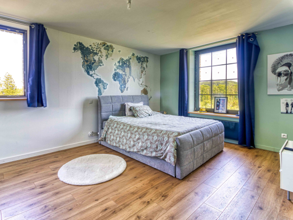 L’étage supérieur vous offre les quatre très belles chambres avec chacune sa salle d’eau, au dernier étage l’espace mezzanine et la salle de jeux.