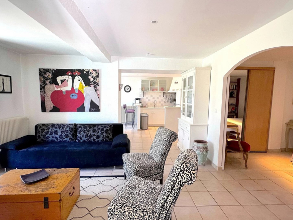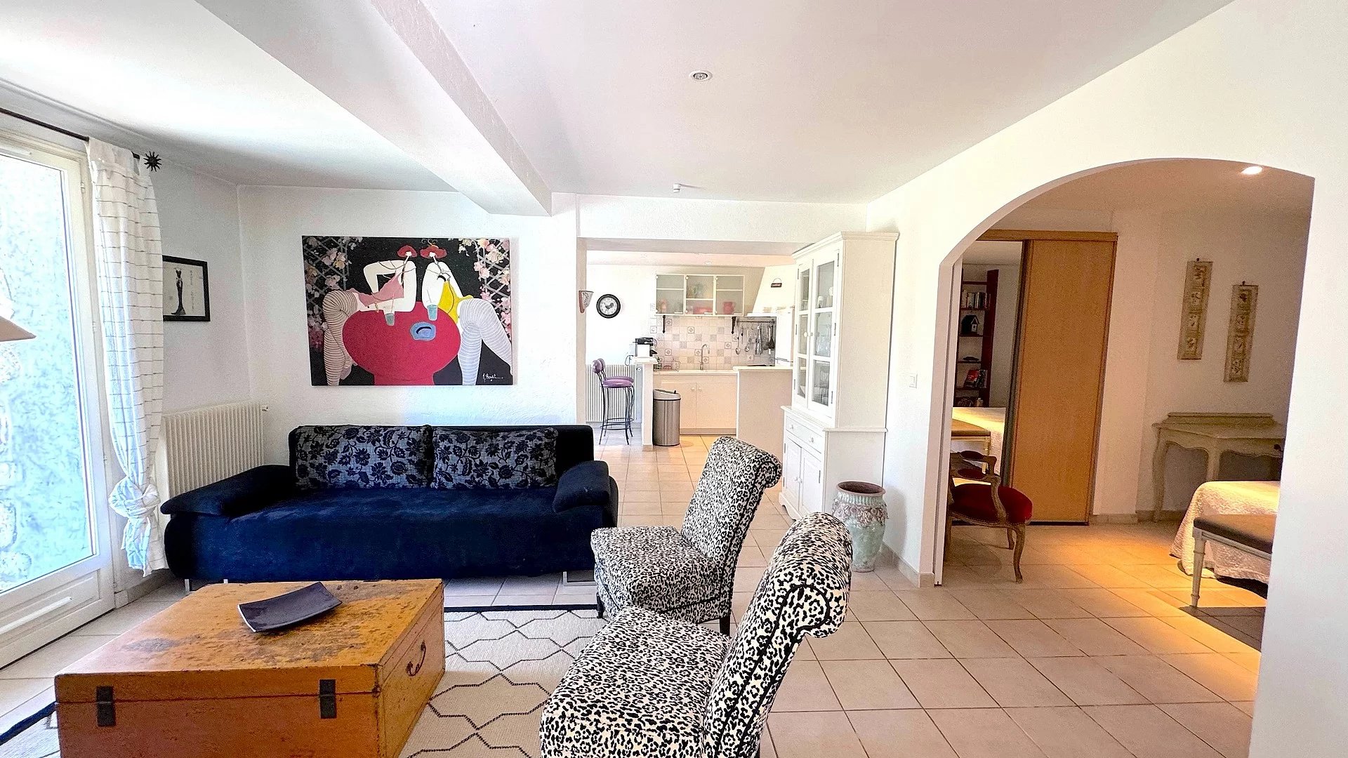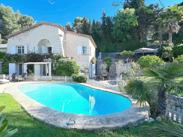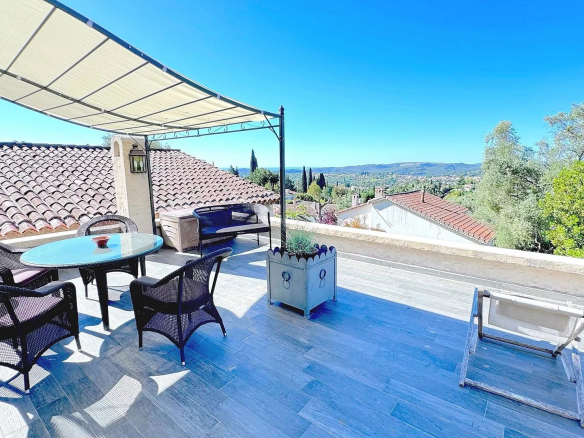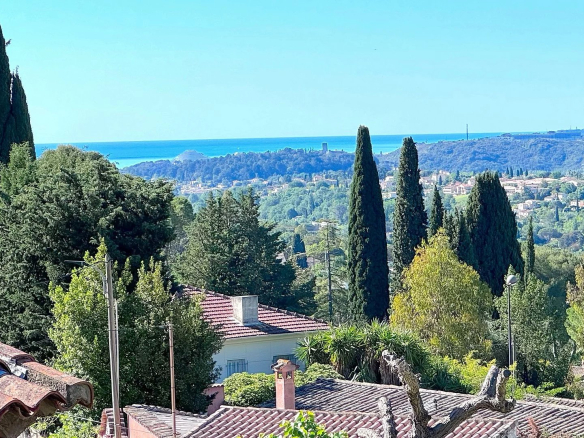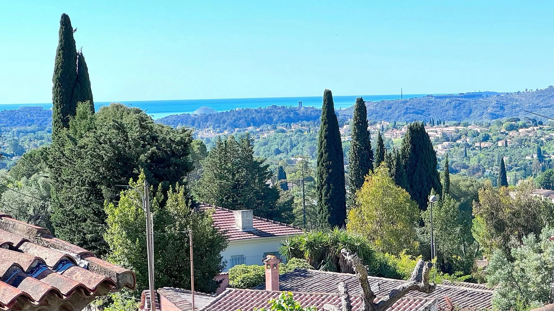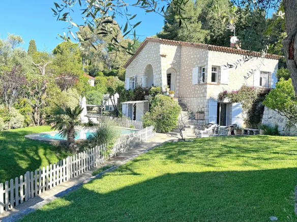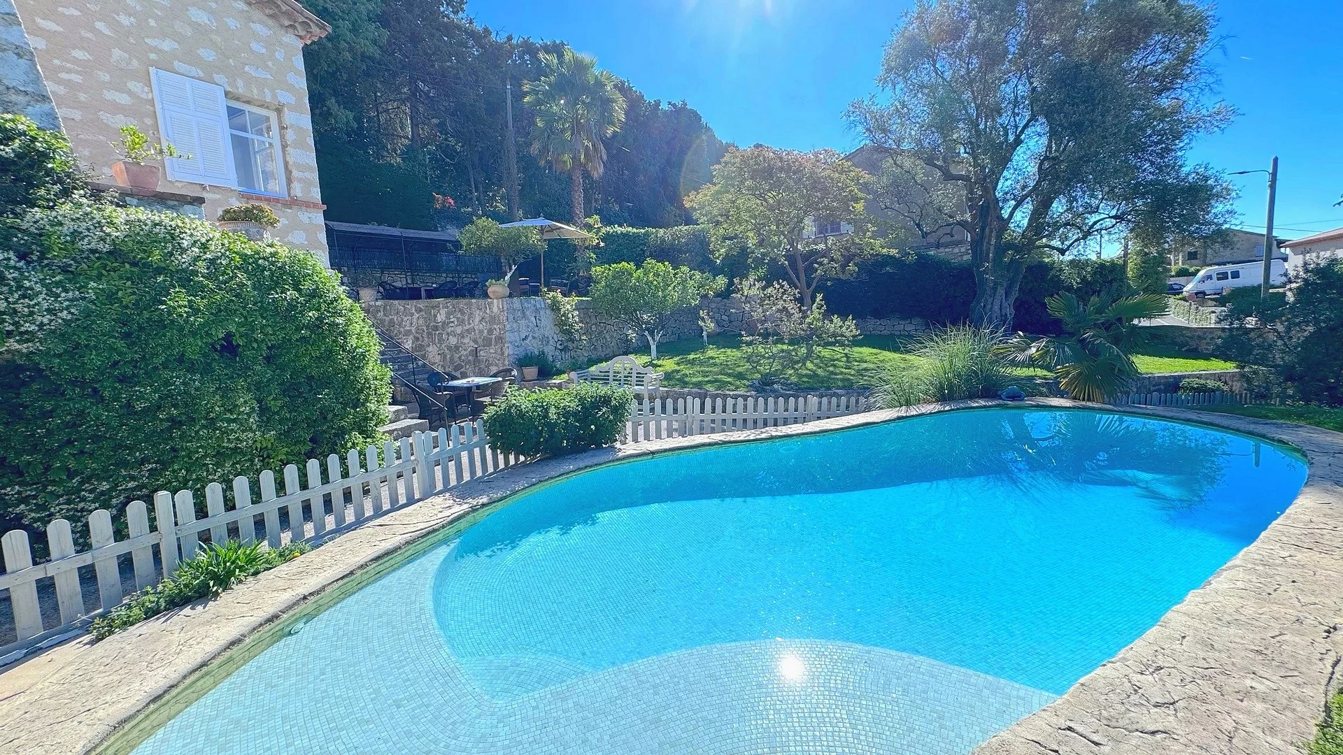Proche du village de St Paul de Vence, belle maison en pierres comprenant deux appartements indépendants et bénéficiant de vues dégagées.