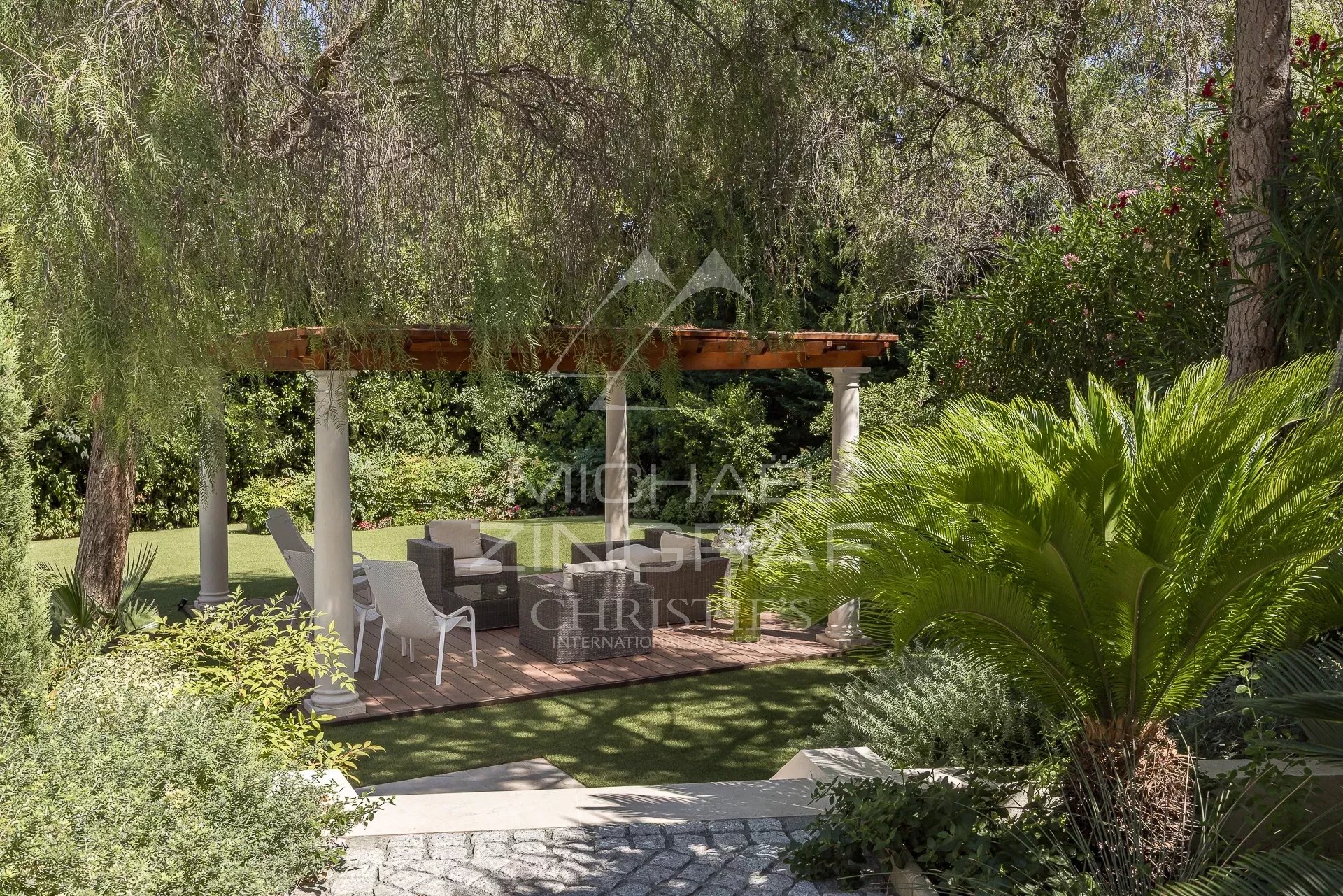À l’extérieur, vous apprécierez le jardin exotique, une piscine au sel (12,5 x 5,5 m), ainsi qu’un pool house équipé avec cuisine.