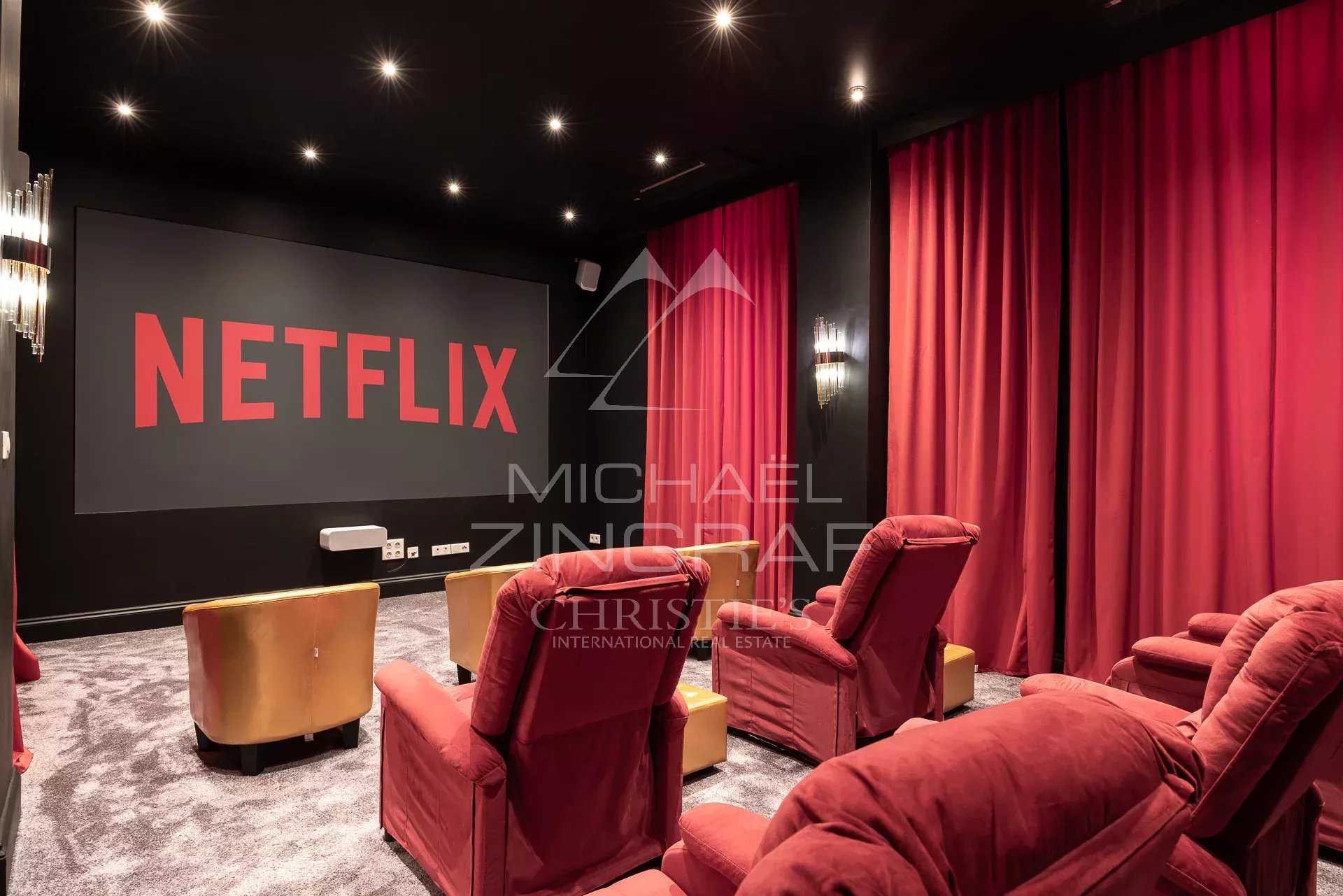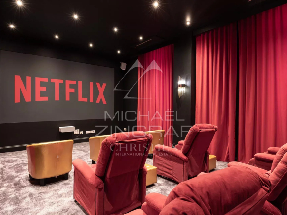Le parking pour 10 voitures, les systèmes de sécurité avancés, la climatisation, ainsi que des équipements comme une salle de cinéma, salle de sport et billard ajoutent au confort.