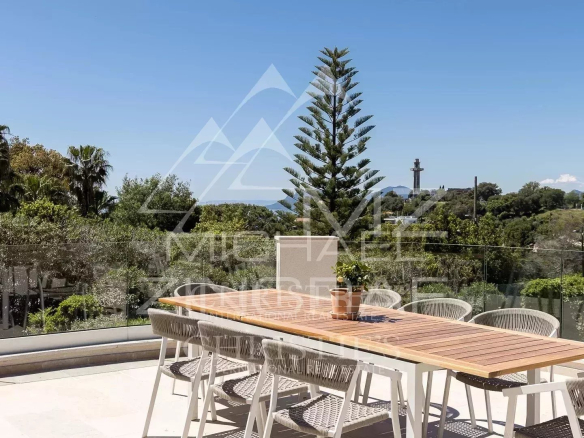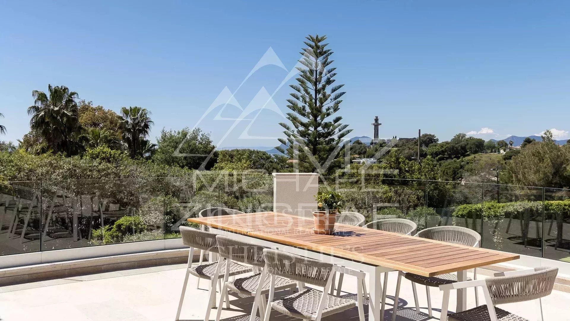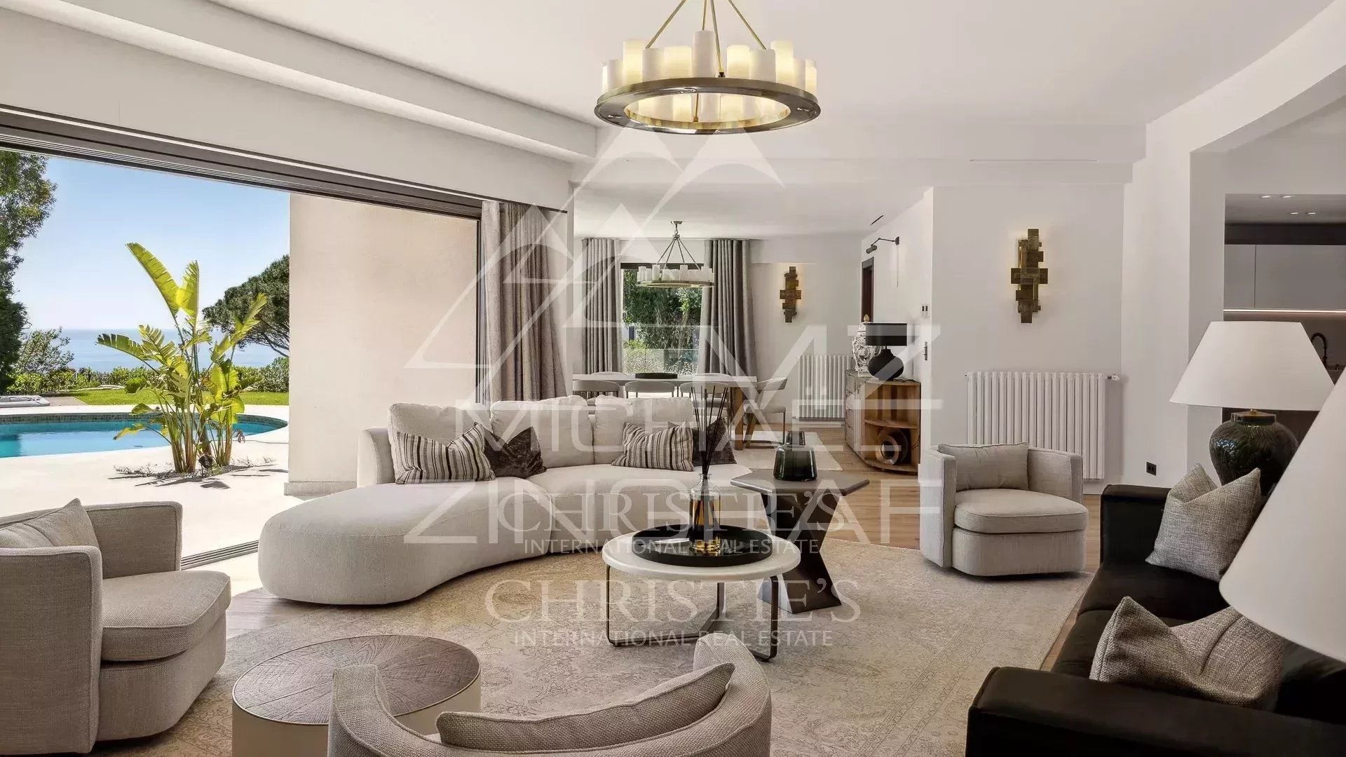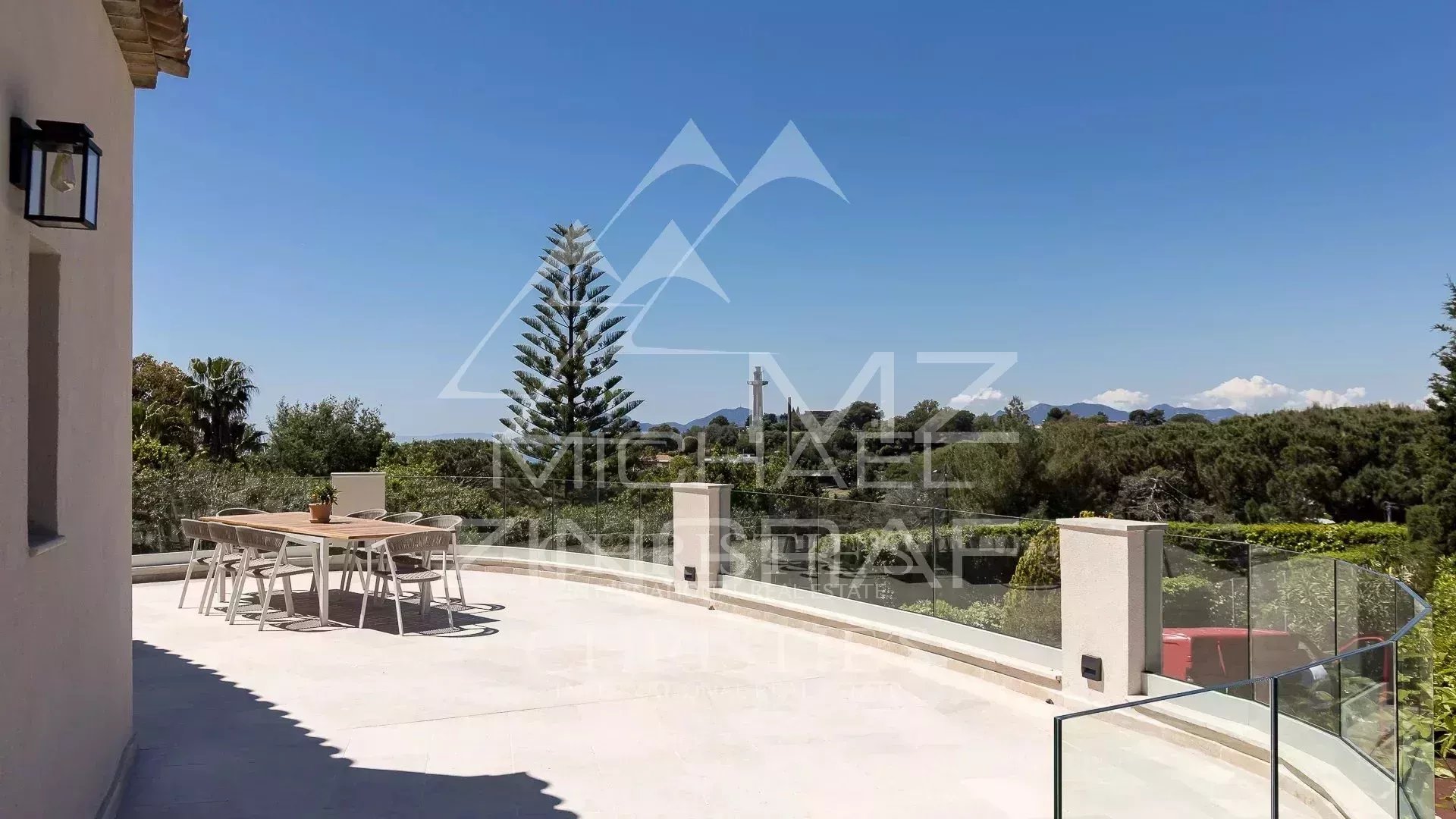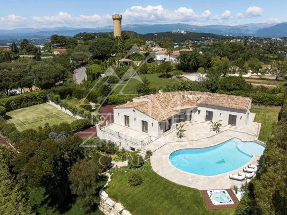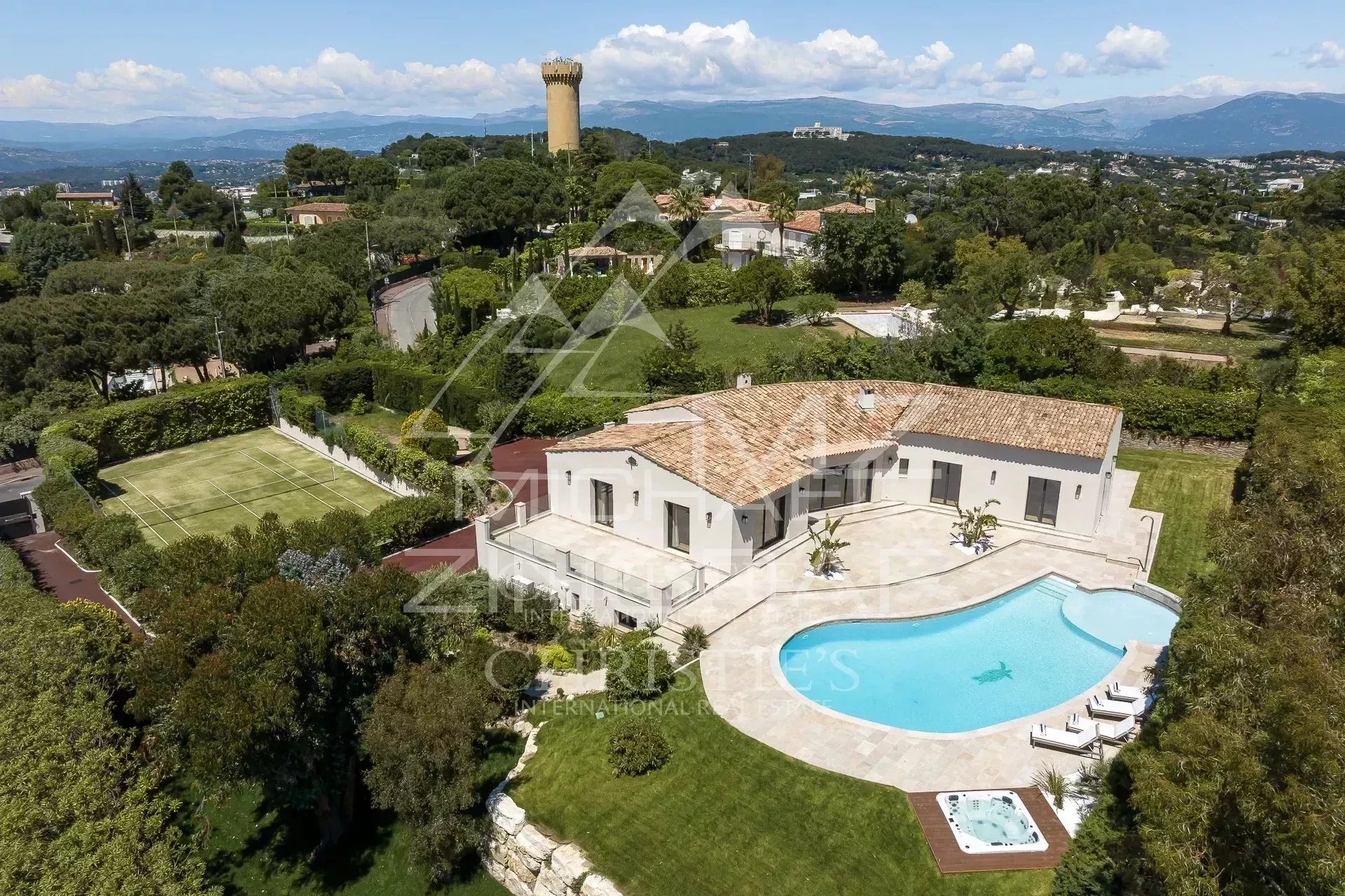 Sur les hauteurs de Cannes, en plein cœur du quartier résidentiel de Super-Cannes, en position dominante, surplombant la mer et l’Estérel, charmante propriété de style provençal moderne, entièrement et récemment rénovée dans l’esprit contemporain. La villa d’environ 355 m2 offre tout le confort et l’intimité à la vie de famille. Avec ses 6 chambres en suite dont 2 indépendantes elle offre la possibilité de recevoir confortablement des amis et / ou d’avoir du personnel à demeure.