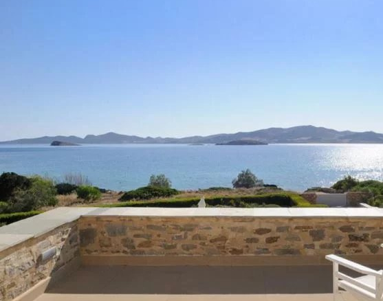 Cette villa remarquable est située sur une plage peu fréquentée dans la partie sud-ouest de Paros, surplombant l’île idyllique d’Antiparos. Le terrains paysage est plante de grands arbres et les buissons aromatiques qui créent un contraste vert vif avec la mer d’un bleu profond. L’extérieur de la villa, entièrement en pierre, maintient un équilibre parfait avec son environnement naturel.