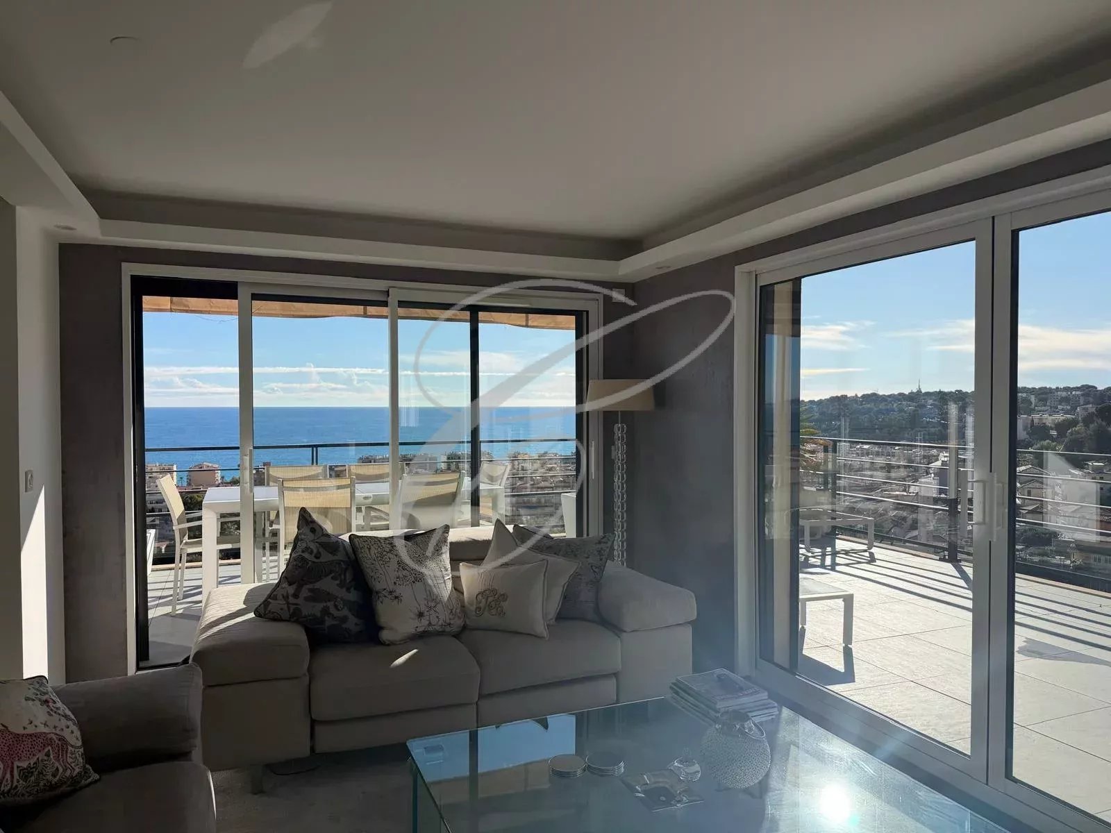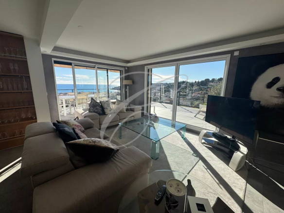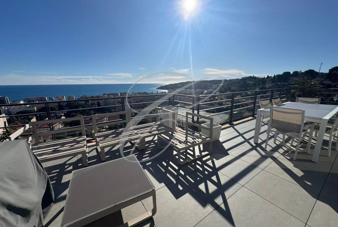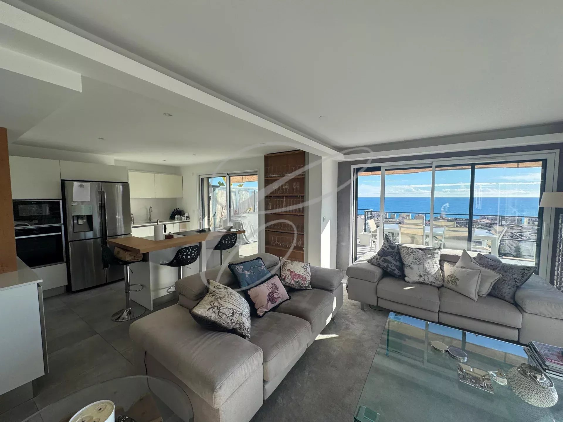 Dans résidence récente sécurisée avec piscine, magnifique penthouse en dernier étage avec vue mer. 3 pièces d’environ 100 m² habitables, composé d’un grand séjour avec cuisine américaine équipée, deux chambres en suite. Très grande terrasse. Deux parkings couverts et une cave complètent ce bien.