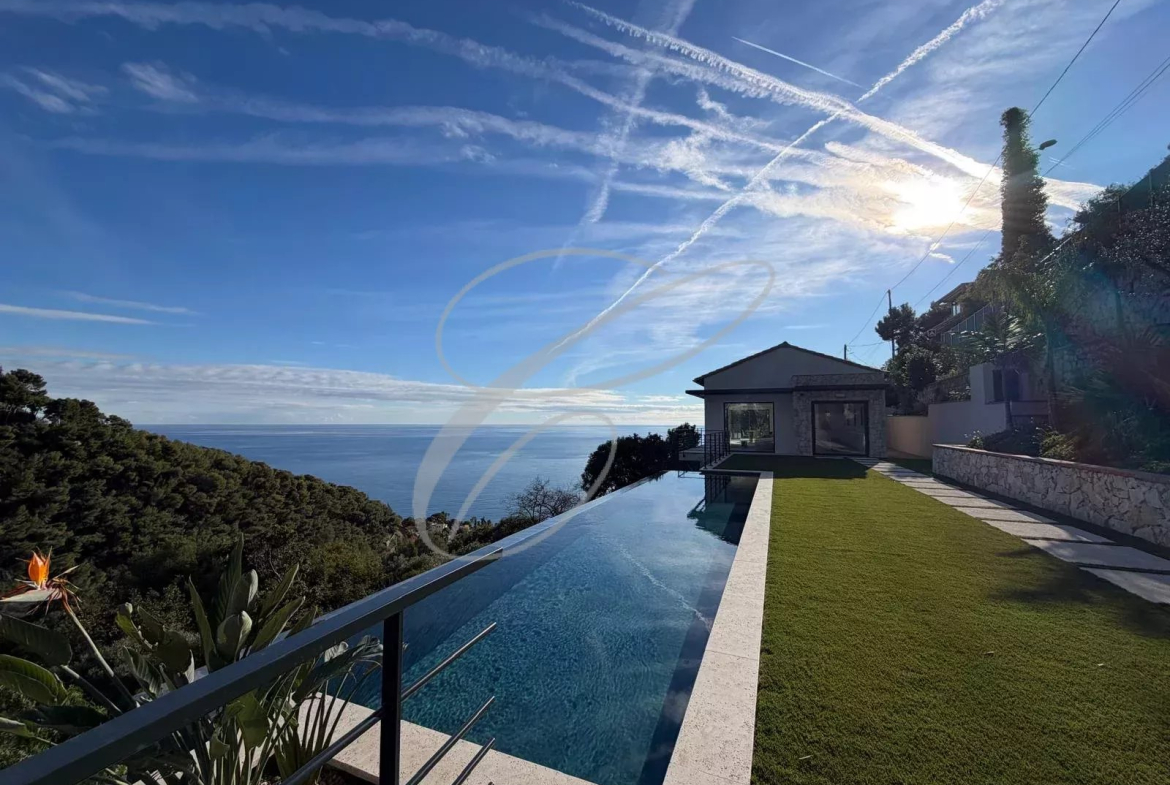Située dans un quartier calme et recherché, à proximité de la Principauté de Monaco, villa rénovée avec piscine chauffée à débordement. Vue mer panoramique. Villa très ensoleillée, composée d’un séjour avec cuisine américaine équipée, 4 chambres, 3 salles de bains. Jardin arboré. Un parking avec 4 places de stationnement complète ce bien.