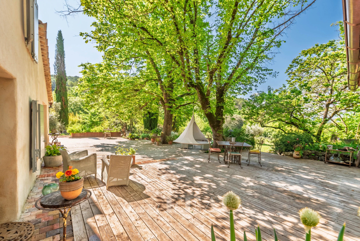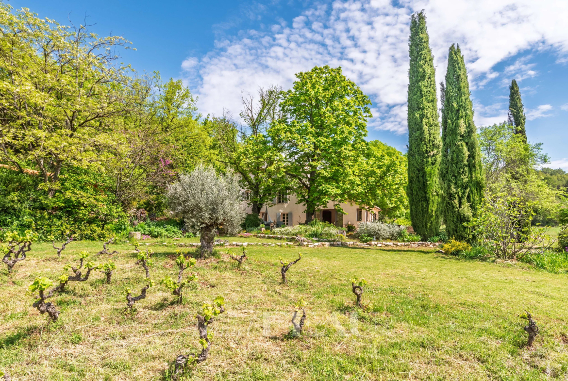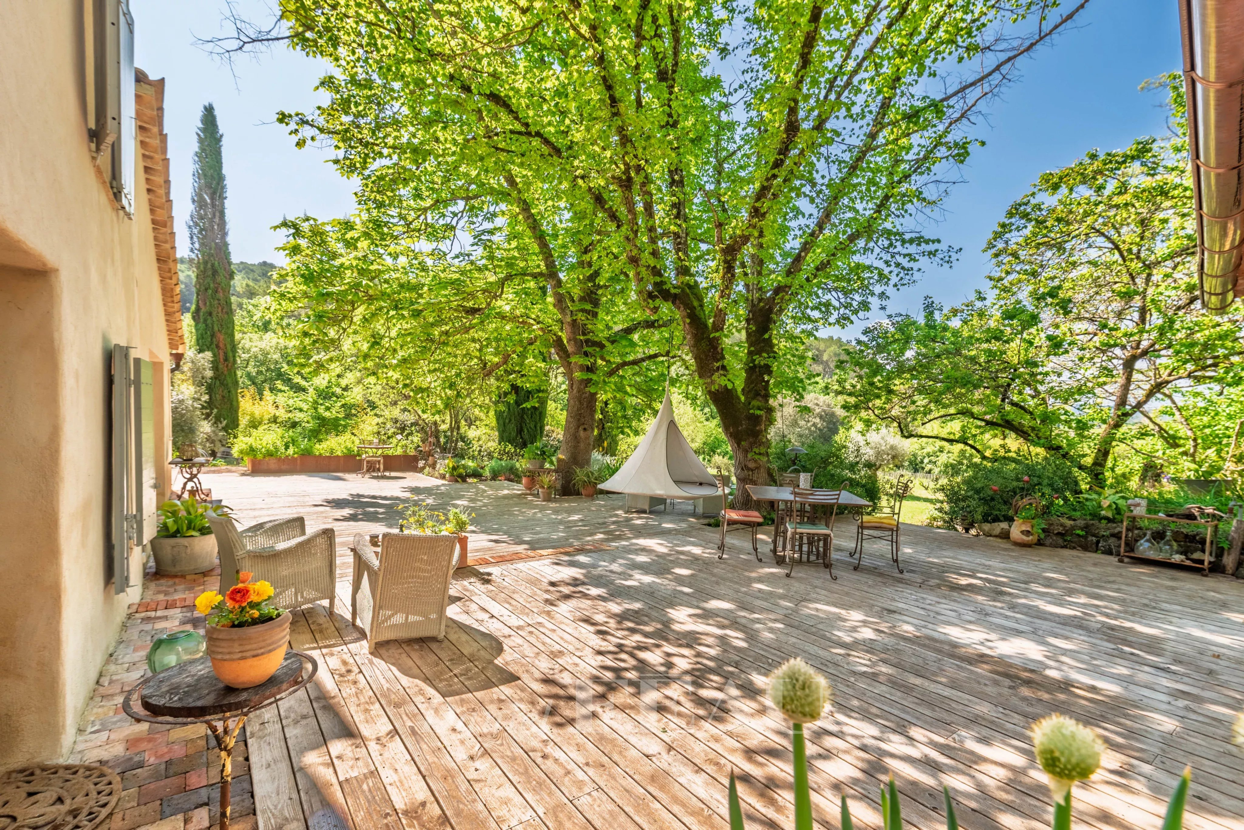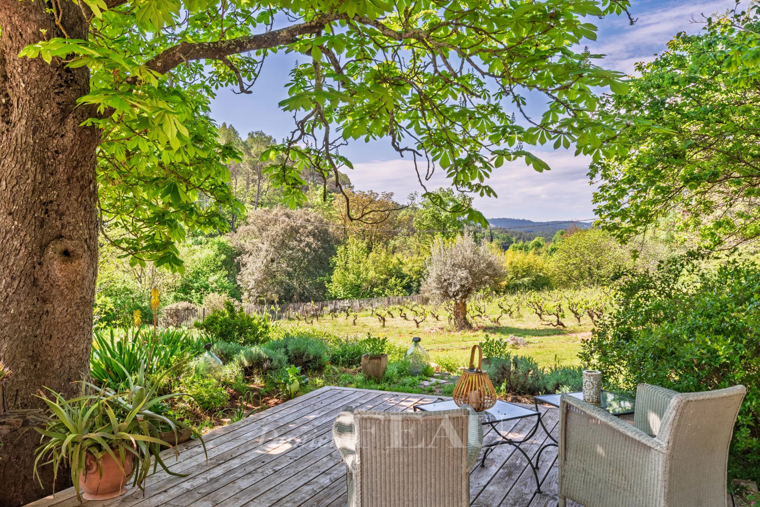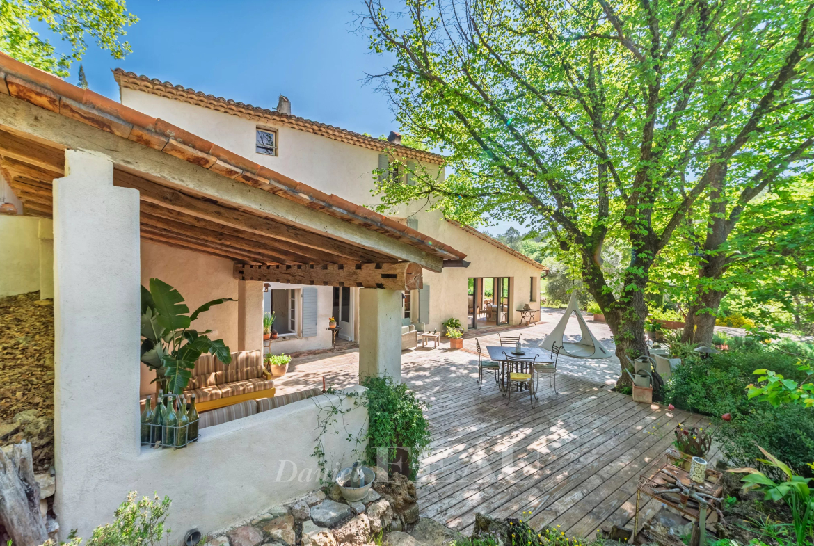 Dans un écrin de verdure préservé, proche de Lorgues, ravissante propriété de 233 m2 sur un terrain de 4 hectares avec vue panoramique sur la campagne environnante.
