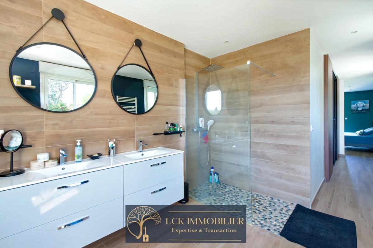 Prestations : Climatisation gainable, huisseries alu, domotique, rangements, stationnement multiple. Accès rapide à Fréjus, Les Issambres et au Golf de St-Tropez.