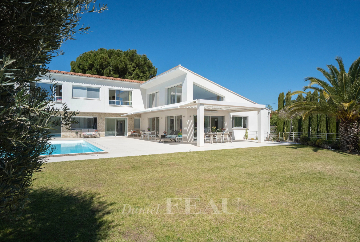 Au cœur du quartier résidentiel des Lecques, à quelques minutes à pied de la plage et des commerces, cette villa d’architecture contemporaine développe 370 m² habitables sur un terrain plat et paysager de 1 400 m².