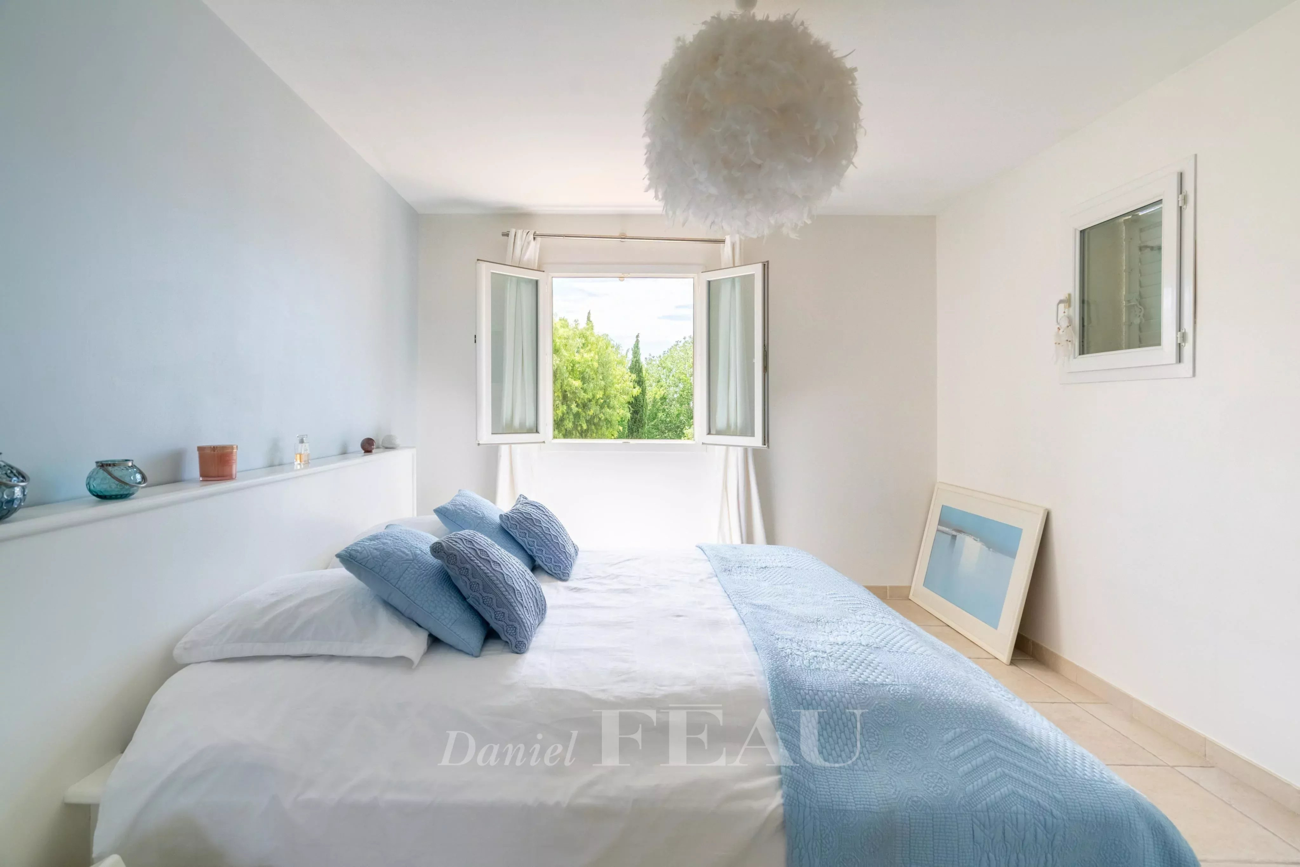 Sur un secteur prisé et calme, vaste villa de 180m2 environ située entre la mer (7 minutes à pied) et le village (7 minutes à pied).