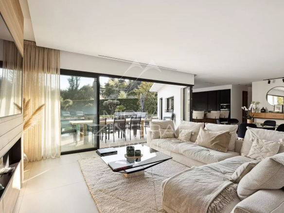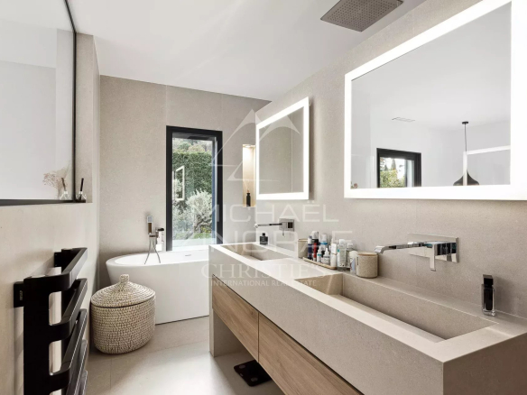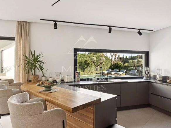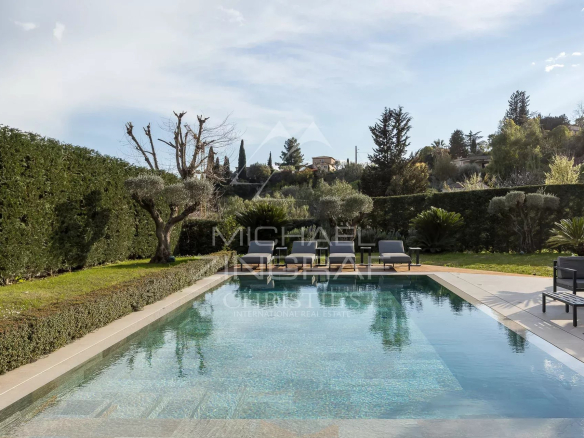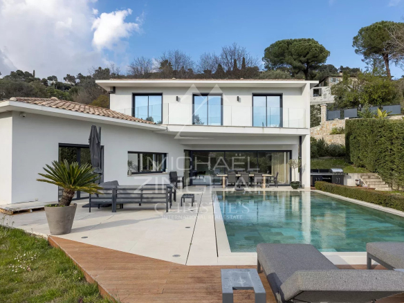 A pieds du célèbre village médiéval de Saint-Paul de Vence, cette villa contemporaine récente est très lumineuse et évoque une atmosphère de tranquillité et de calme.