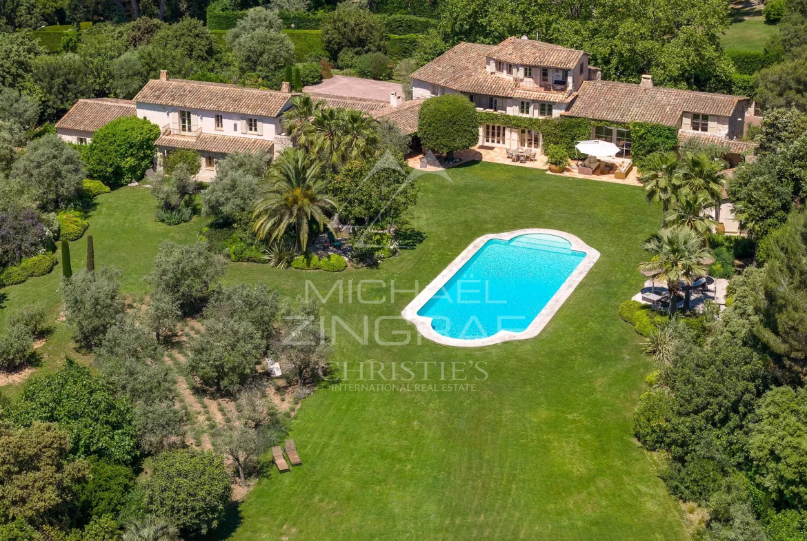 Au cœur du domaine privé le plus recherché de la région, découvrez cette somptueuse bastide signée de l’architecte GISELBACH nichée dans un parc paysager d’environ 1,3 ha avec vue panoramique sur la mer, la campagne et le village iconique de Saint Paul de Vence.