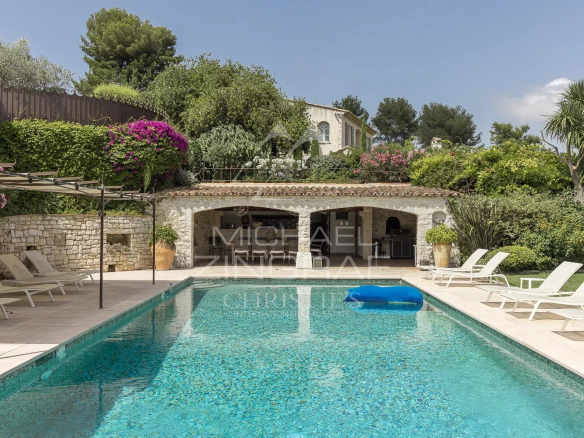 Co-exclusivité. Sise au sein du domaine privé le plus prestigieux et recherché des environs, “Les Hauts de Saint Paul”, cette superbe propriété de style provençal entièrement rénovée bénéficie d’un joli aperçu mer et d’une très belle vue sur le village de Saint-Paul-de-Vence.
