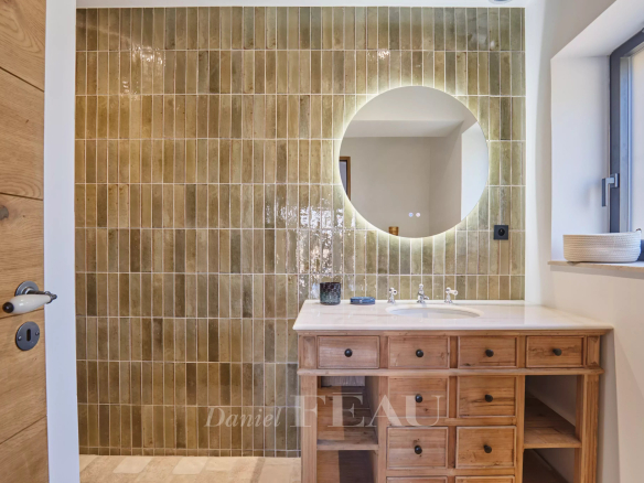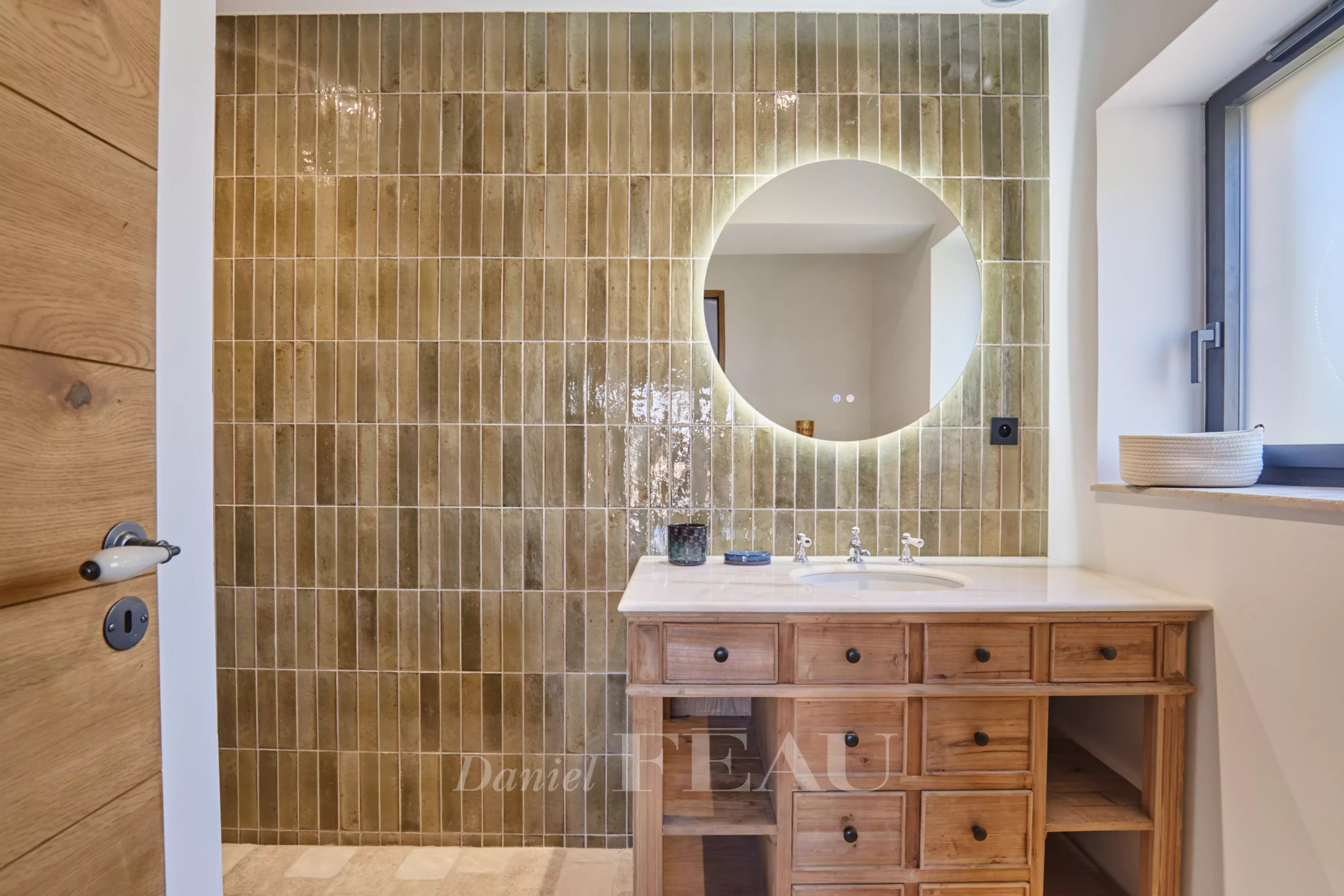À l’étage, cinq suites supplémentaires, chacune dotée de son dressing et de sa salle d’eau privative, permettent de recevoir famille et amis en toute intimité.