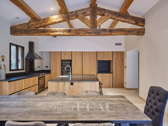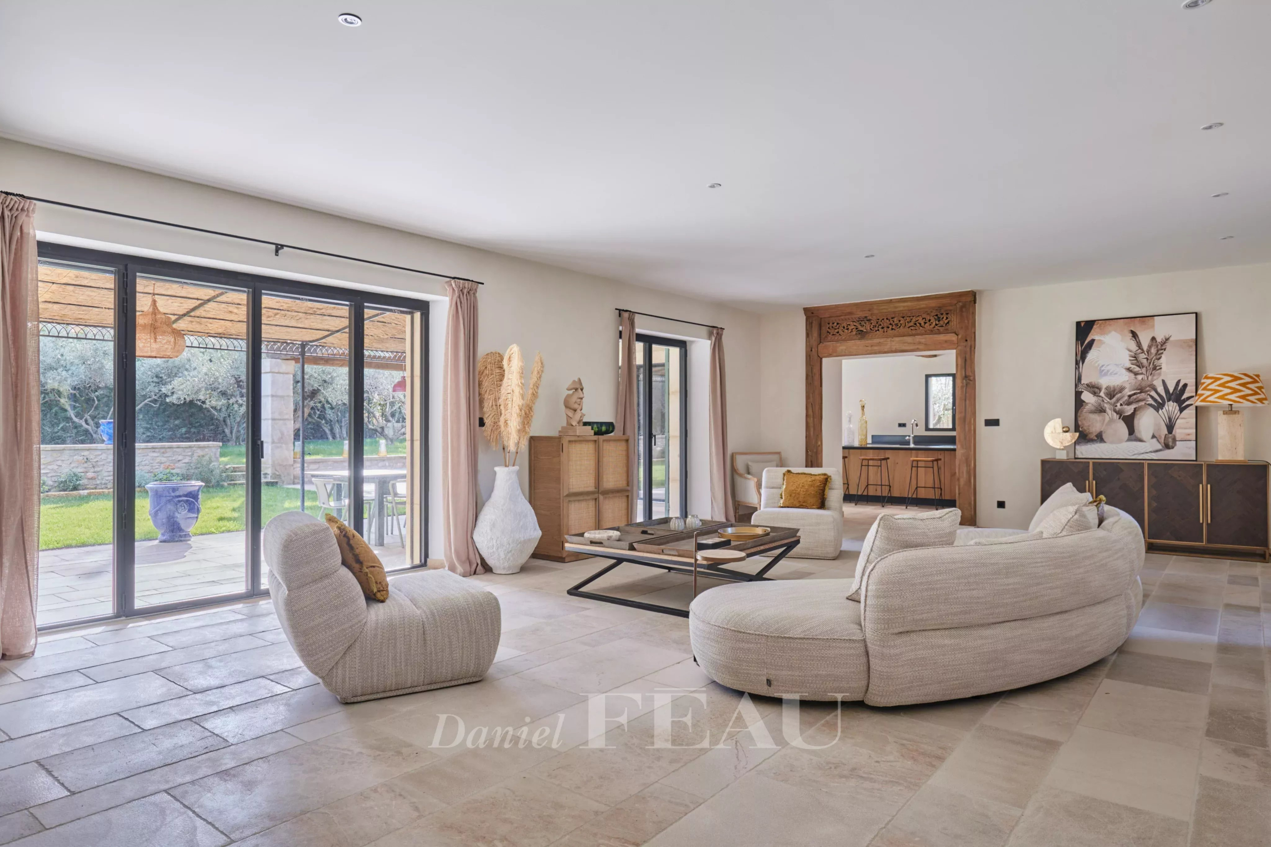 À l’extérieur, le jardin paysager de 1 671m2 s’organise autour d’une piscine chauffée et d’un pool house d’été, constituant un véritable lieu de vie en plein air, parfaitement en harmonie avec l’art de vivre provençal.