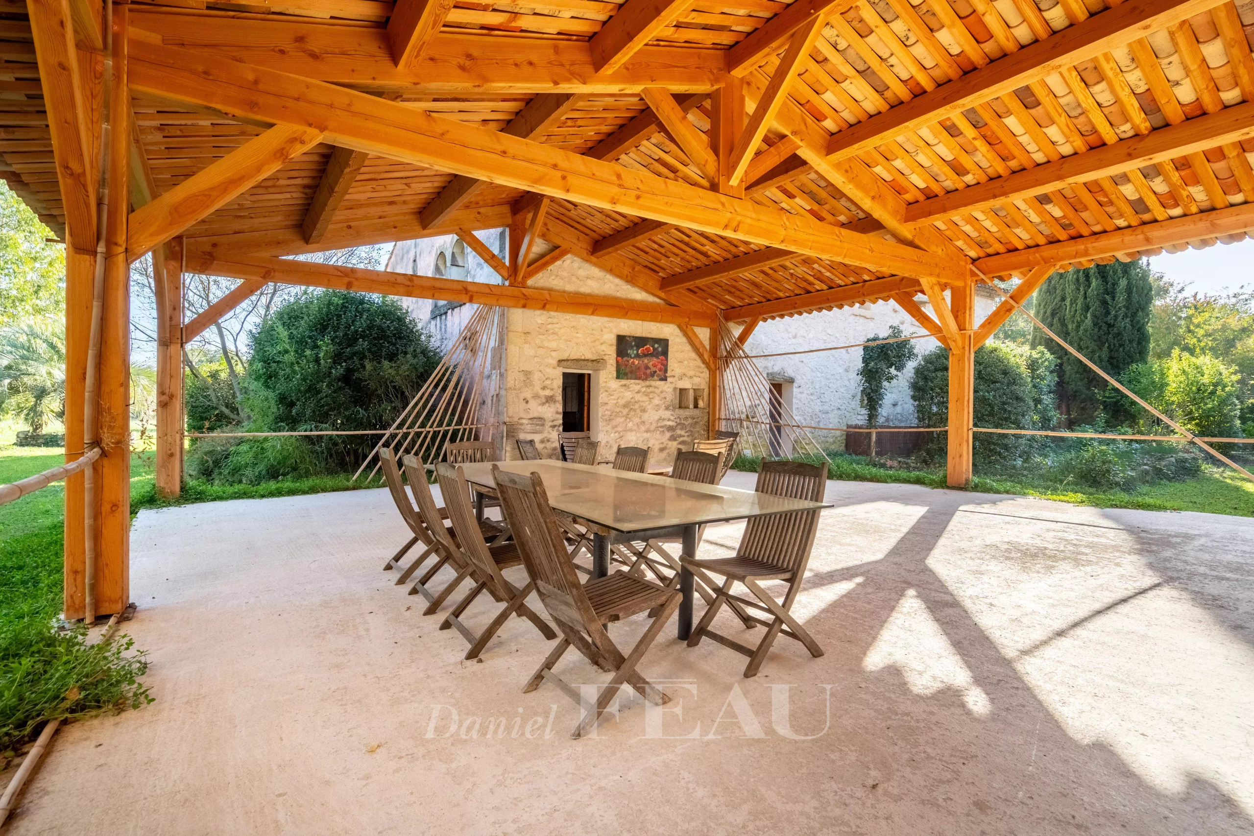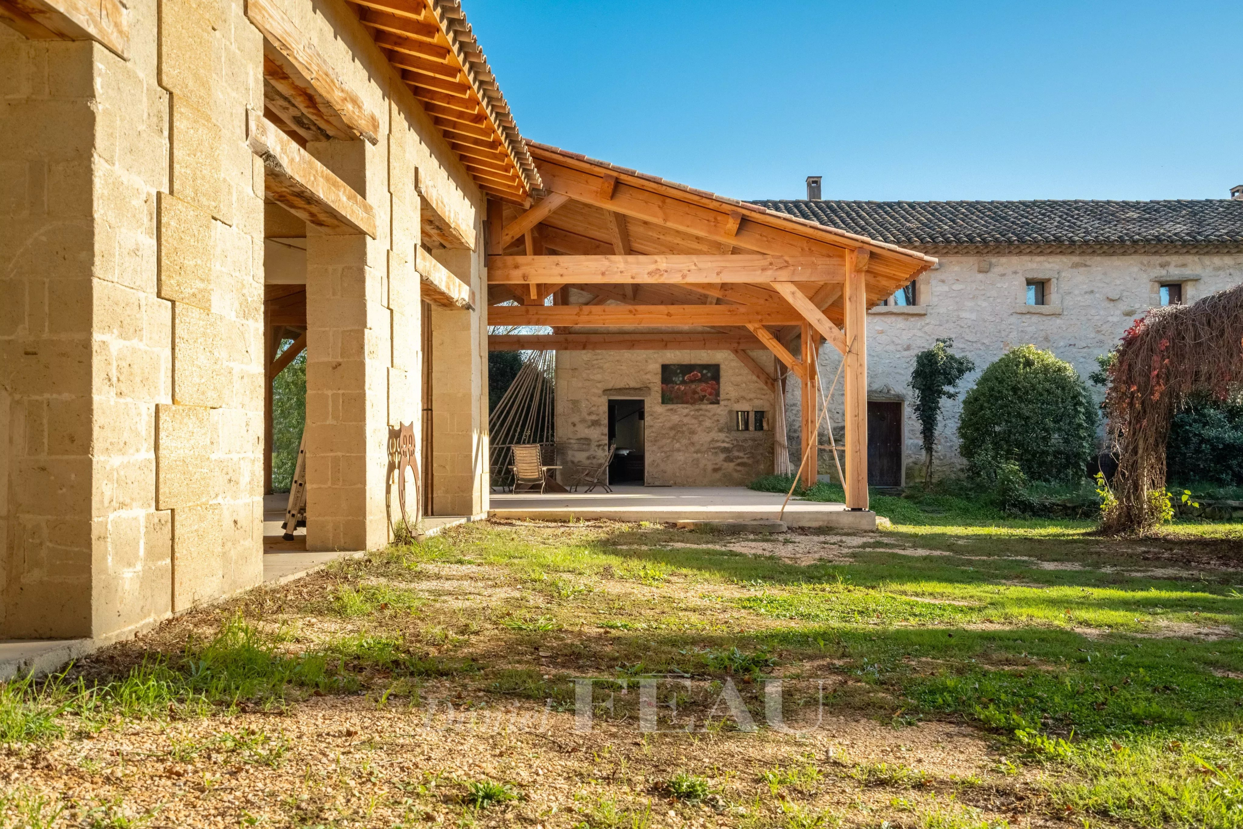 Un hangar en pierre de taille de 126 m² et un second hangar en bois de 360 m² complètent l’ensemble.