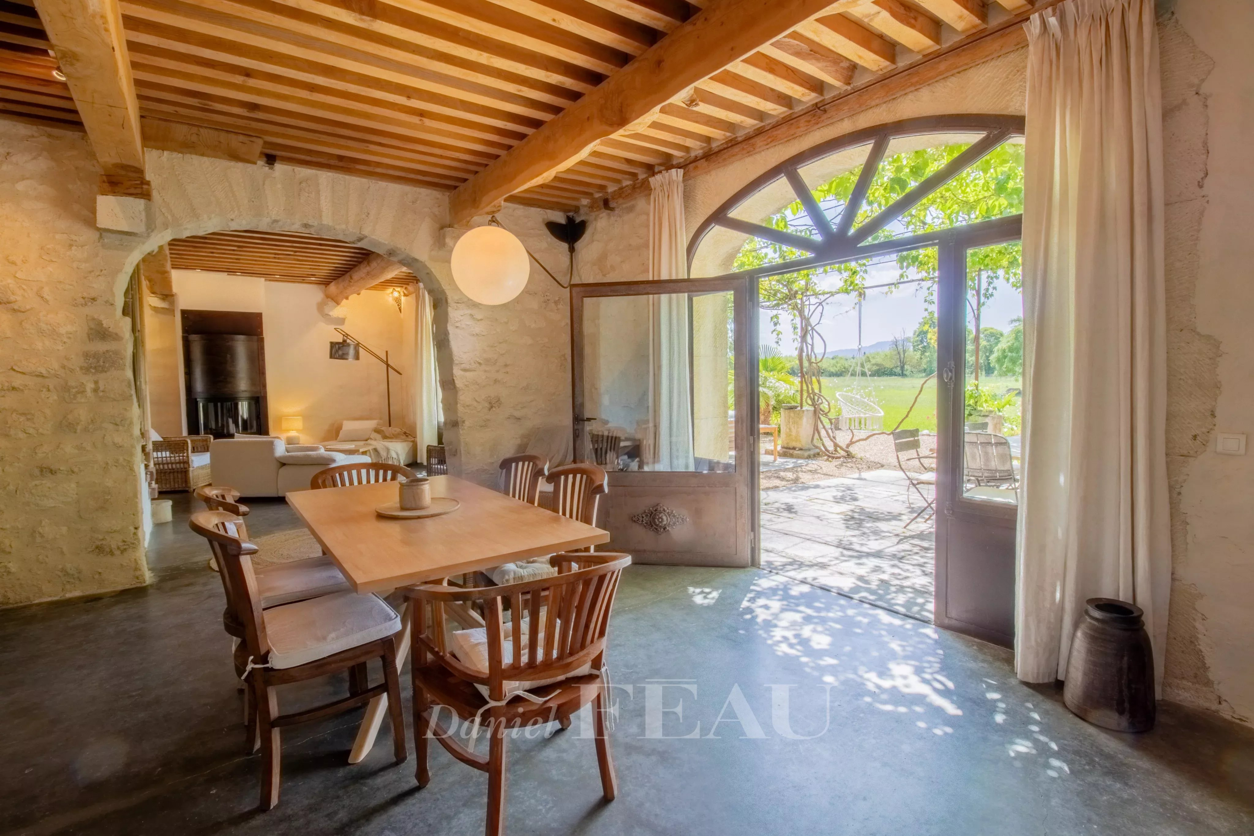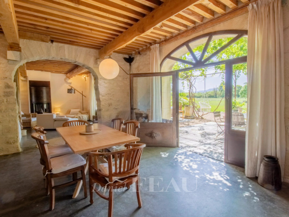 Côté extérieur, le parc paysager parfaitement entretenu assure un cadre intimiste, à l’abri des regards, et est agrémenté d’une piscine à débordement de 9x11m offrant une vue panoramique sur les Alpilles. Une terrasse couverte de 121 m2 permet de profiter des extérieurs au fil des saisons.
