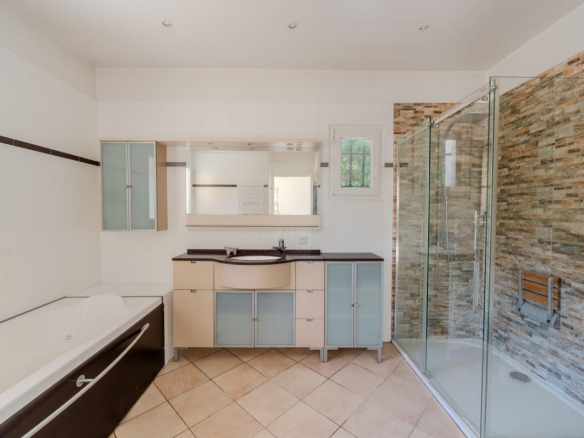 Pour votre confort, la villa offre des prestations de qualité : baies vitrées à galandage, chauffage au sol, volets roulants électriques, aspiration centralisée, alarme.
