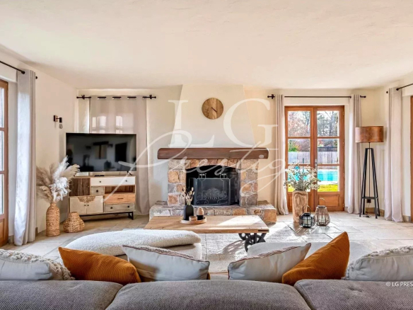 Charmante villa de plain-pied, nichée dans un environnement verdoyant et paisible, sur un terrain arboré d’environ 1,2 hectares à Seillans.