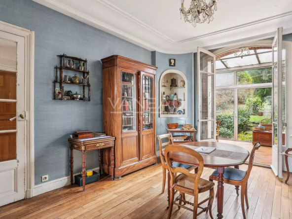 Dans le quartier le plus prisé de Sèvres, à proximité immédiate du Parc de Saint-Cloud et de la gare Rive Droite, cette meulière de caractère (avec sa façade classée), exposée plein sud, offre un cadre de vie rare et recherché.