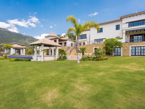 Villa San Lorenzo. Ce manoir de luxe immaculé se trouve dans la communauté résidentielle fermée exclusive de La Zagaleta, idéalement située près de l’entrée nord sur un terrain surélevé. Vous accédez à la propriété par un portail électrique, suivi d’une allée entourée d’arbres matures. L’orientation sud-ouest de la propriété offre une vue imprenable sur les collines verdoyantes environnantes et la côte.
