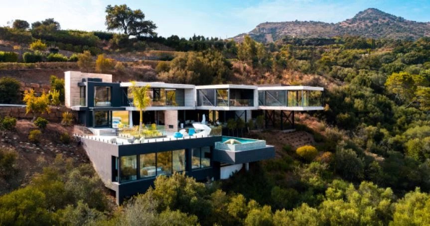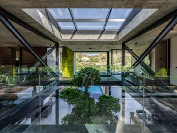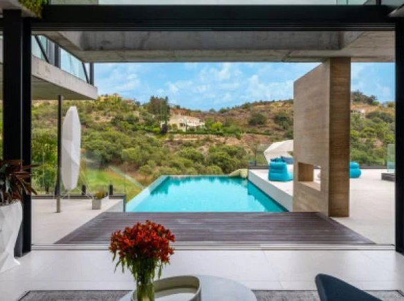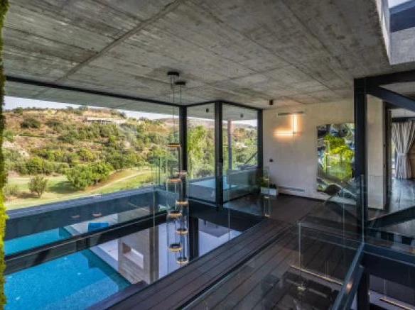 La villa de style contemporain de 523 m² se trouve sur un terrain de 4 139 m² nichée dans les collines tranquilles de Benahavis. Cette maison combine magnifiquement la fluidité de l’eau avec une conception intelligemment passive avec du béton apparent à haute masse thermique.