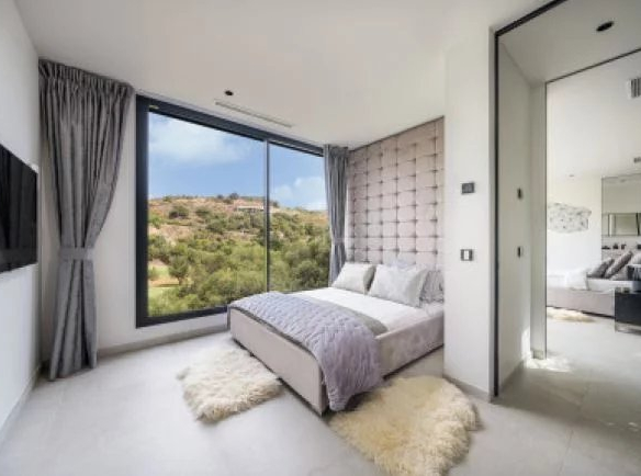La suite principale est une merveille, comprenant deux commodes séparées au design interconnecté de la maison italienne Febal Casa. Ces commodes s’ouvrent sur un jardin privé aux conifères majestueux et au parfum de jasmin sauvage, créant une expérience vestimentaire royale devant un miroir rétro-éclairé du sol au plafond.