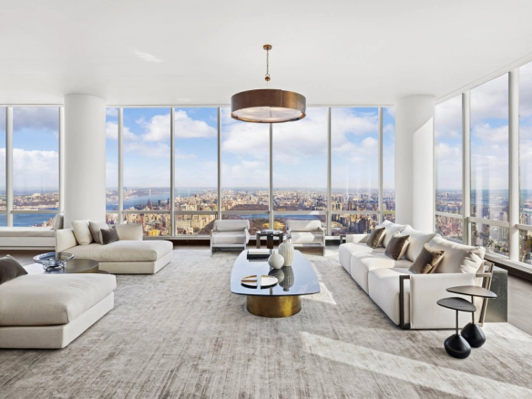 Arrivez à un palier d’ascenseur privé et entrez dans ce vaste étage, 4 chambres, 5 salles de bains et demi à travers un hall d’entrée gracieux qui s’ouvre sur le salon-salle à manger. La grande salle possède des plafonds d’environ 11’8 et 57 pieds de vues inégalées sur Central Park à travers les fenêtres du sol au plafond. De la grande salle, les vues incluent la rivière Hudson, bien après le pont George Washington et à l’ouest, et la rivière East à l’océan Atlantique et au-delà.