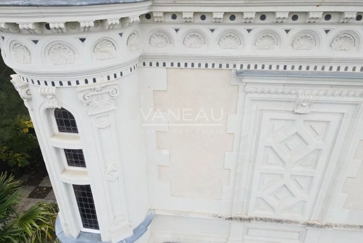 Dès l’entrée, la magie opère : volumes majestueux, lumière traversante, parquets anciens, moulures et vitraux racontent l’histoire d’une demeure hors du temps.