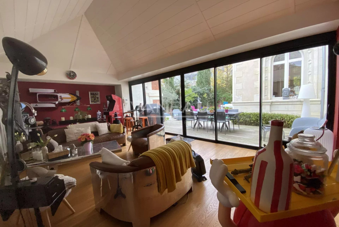 Sur plus de 600 m² de terrain, dans un calme absolu, cette propriété séduit aussi par son triple garage fermé — un privilège rare en plein centre d’Angers.