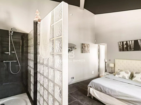 Les extérieurs disposent d’équipements soignés : une piscine chauffée de 16 x 7 m, un espace détente avec jacuzzi et cascade, un pool-house climatisé avec four à bois, une tonnelle, une paillote en bois, un terrain de boules, une cabane de rangement et un local technique.