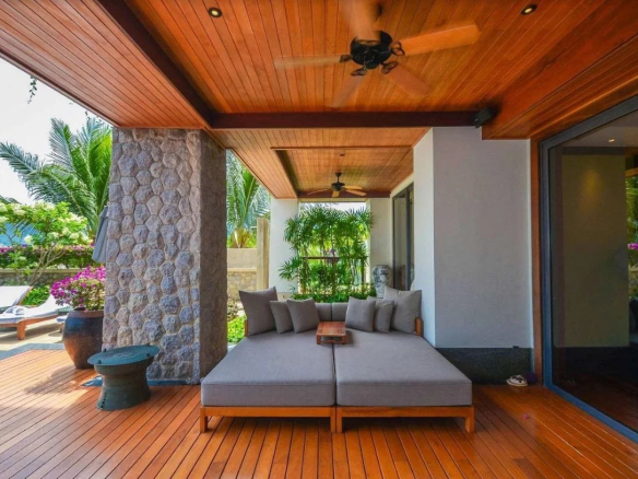 L’intérieur de la propriété est décoré avec beaucoup de goût avec des panneaux de soie douce Jim Thompson, de somptueux canapés, des meubles en teck et de beaux artefacts. La cuisine européenne est un délice à utiliser, bien équipée et spacieuse. Une buanderie séparée se trouve à côté de la cuisine et comprend un lave-linge et un sèche-linge.