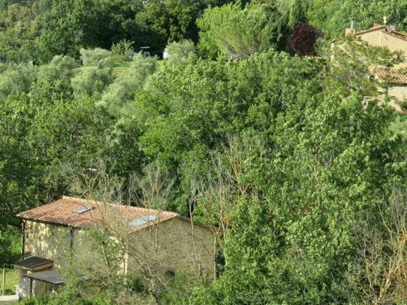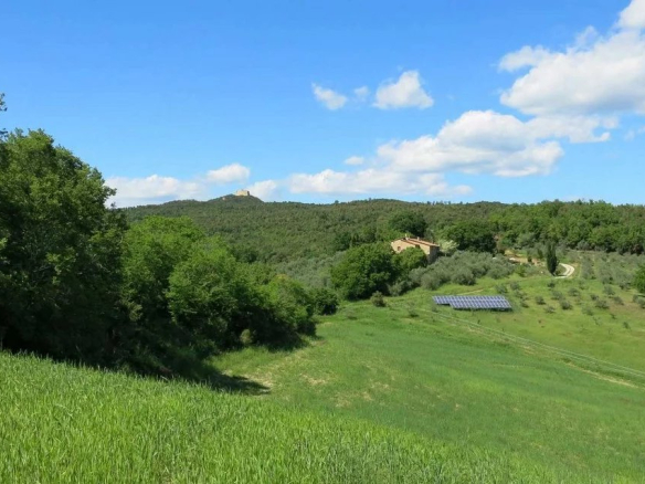 La propriété est située dans une splendide position panoramique au cœur de la campagne toscane, à seulement 30 km de Volterra et à moins de 1 km de la petite ville de San Dalmazio.