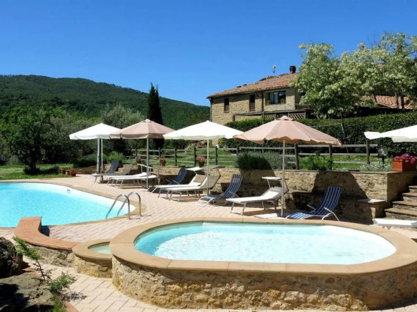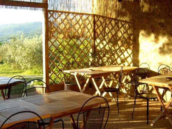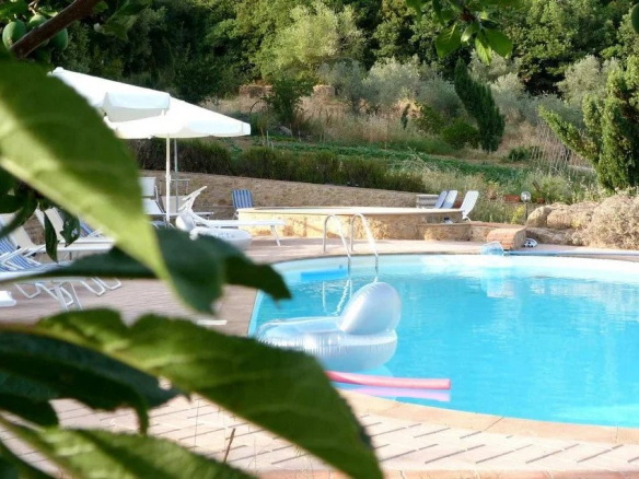 La ferme comprend une ferme en pierre de 420 m2 et une ancienne grange finement rénovée selon les normes typiques toscanes avec des sols et des plafonds en terre cuite avec poutres et chevrons en bois et 95 m2 de terrasses. Au premier étage de la ferme, nous trouvons l’appartement des propriétaires composé de deux chambres, grand couloir, salle de bains, salon avec cheminée, grande cuisine et salle à manger utilisée comme ferme. Au rez-de-chaussée : salle commune avec cheminée, salle de bain, terrasse couverte, buanderie, une autre salle de bain et salle de repassage. En outre quatre grandes chambres avec 10 lits et une terrasse commune. Chaque chambre dispose d’une salle de bain, d’une terrasse et d’une entrée indépendante.