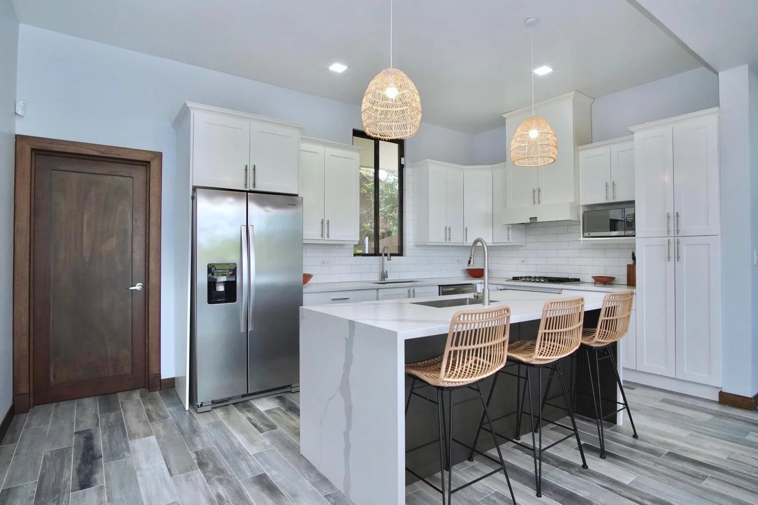 Villa Vista Azul – Une retraite à couper le souffle avec vue sur l’océan dans la prestigieuse communauté fermée de Monte Paraiso, Playa Hermosa ! Cette maison captivante offre une expérience de vie exquise avec ses splendides vues sur l’océan et son design réfléchi. Bénéficiant de 3 chambres et 3,5 salles de bains, cette résidence luxueuse est généreusement spacieuse et méticuleusement conçue qui offre flexibilité et intimité aux invités ou aux revenus locatifs potentiels. Faisant de cette propriété au total 4 chambres, 4,5 salles de bains et 2 cuisines complètes. Entrez dans le salon à aire ouverte qui allie harmonieusement la vie intérieure et extérieure. La vaste terrasse et la piscine accueillante offrent une vue imprenable sur l’océan, créant le cadre idéal pour se divertir et se détendre. La terrasse est équipée d’un barbecue intégré ainsi que de nombreux placards et comptoirs, faisant des repas en plein air une affaire délicieuse. À l’intérieur, la cuisine est le rêve de tout amateur de cuisine, ornée d’appareils électroménagers haut de gamme en acier inoxydable, d’élégantes armoires en bois dur, de comptoirs en granit immaculé et d’un îlot de cuisine pratique.
