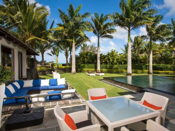 Cette sublime villa de 460m2 est une véritable invitation à la sérénité. L’un des plus beaux atouts de ce bien est sans conteste son jardin qui possède plus de 50 arbres endémiques, dont des « palmiers royaux », et une échappée visuelle sur le superbe lagon et les fairways du golf de renommée internationale d’Anahita.