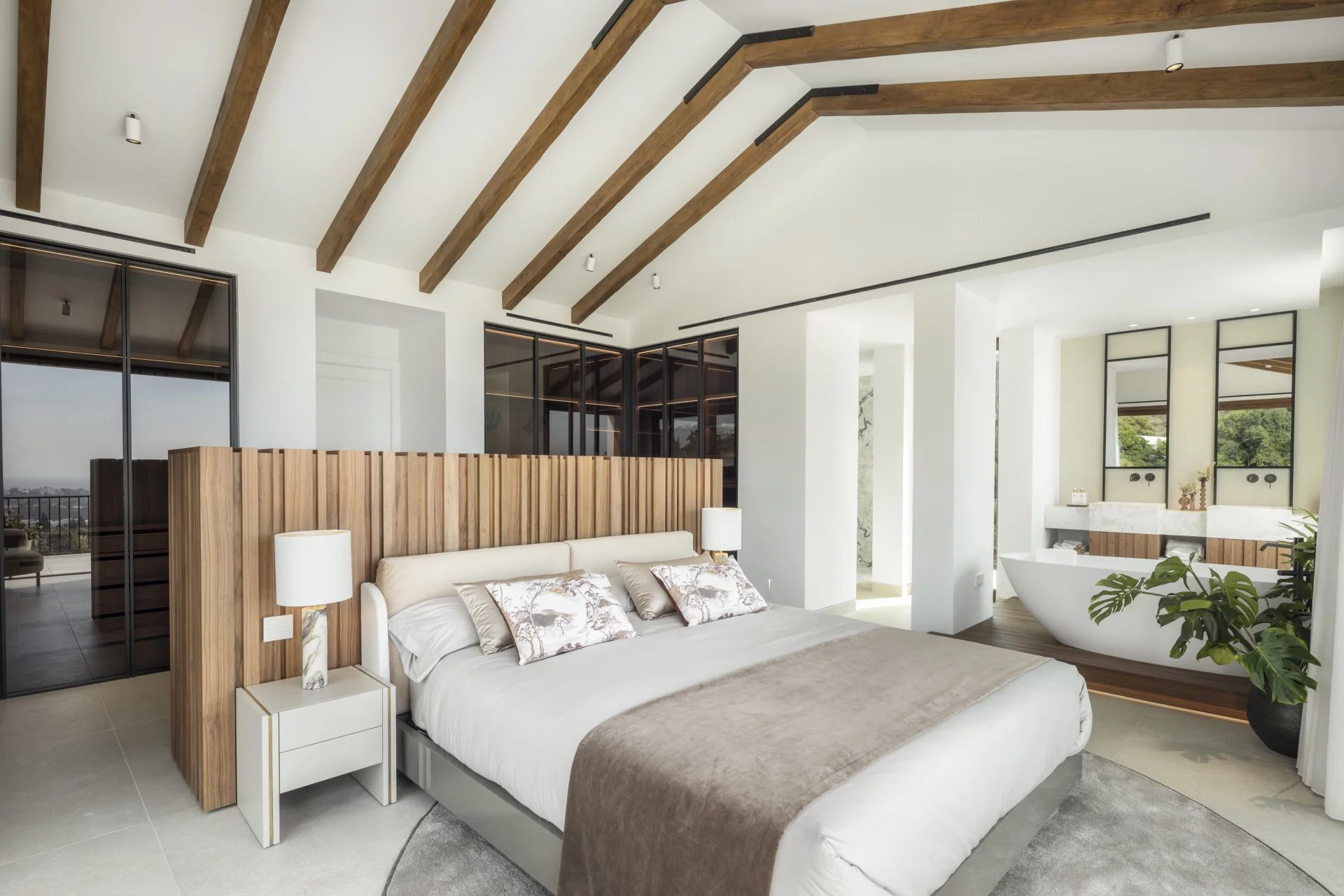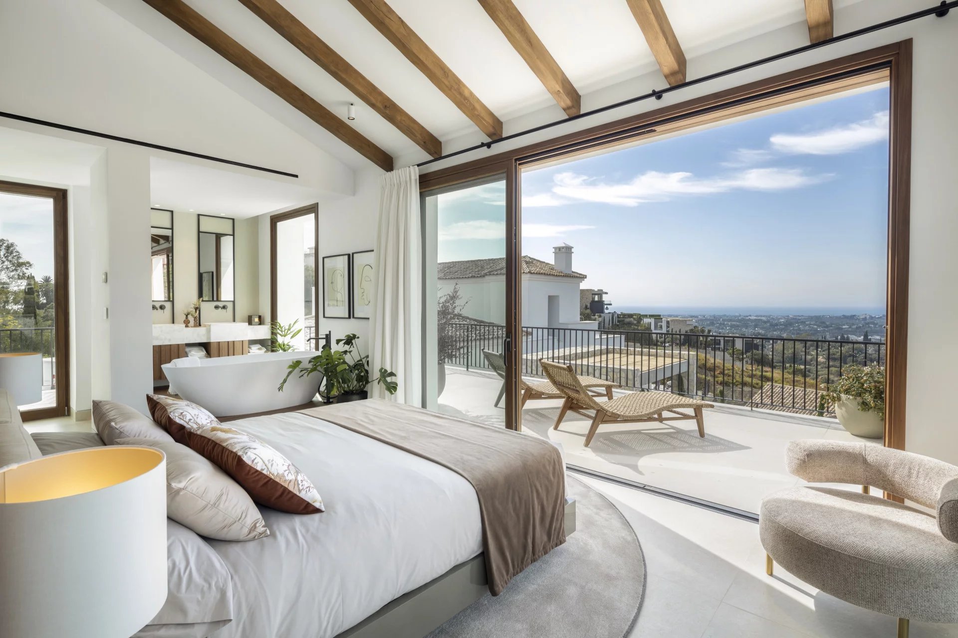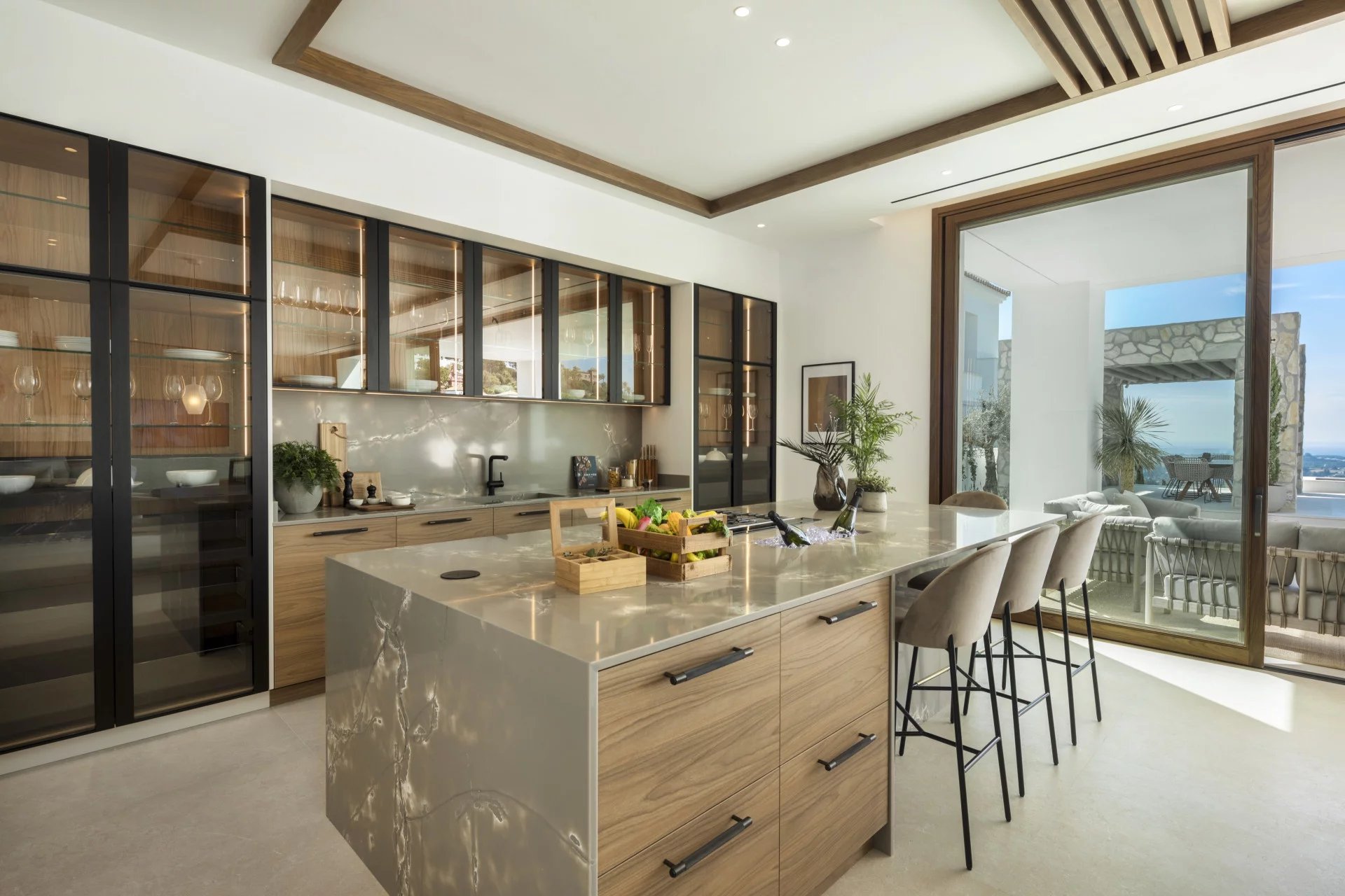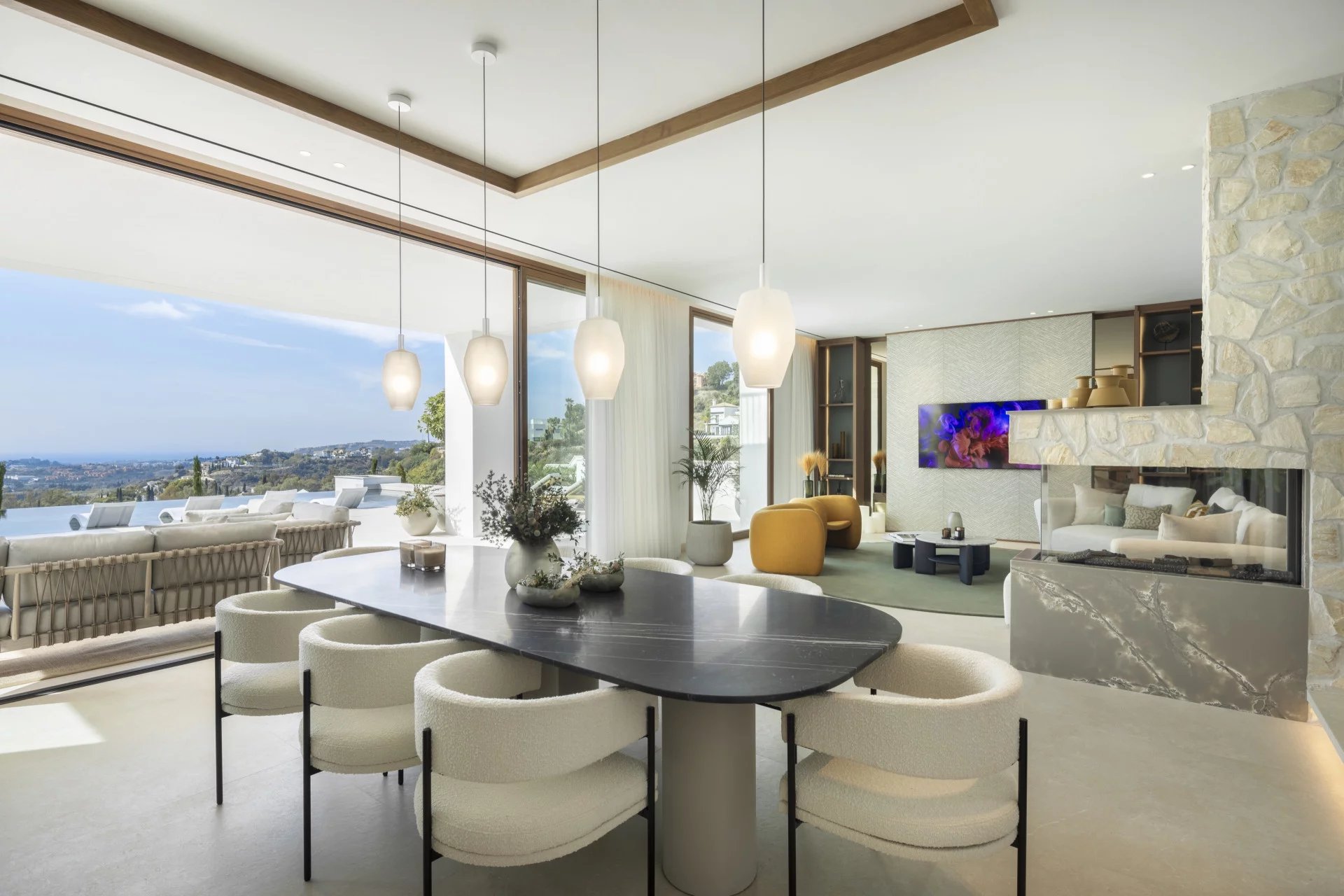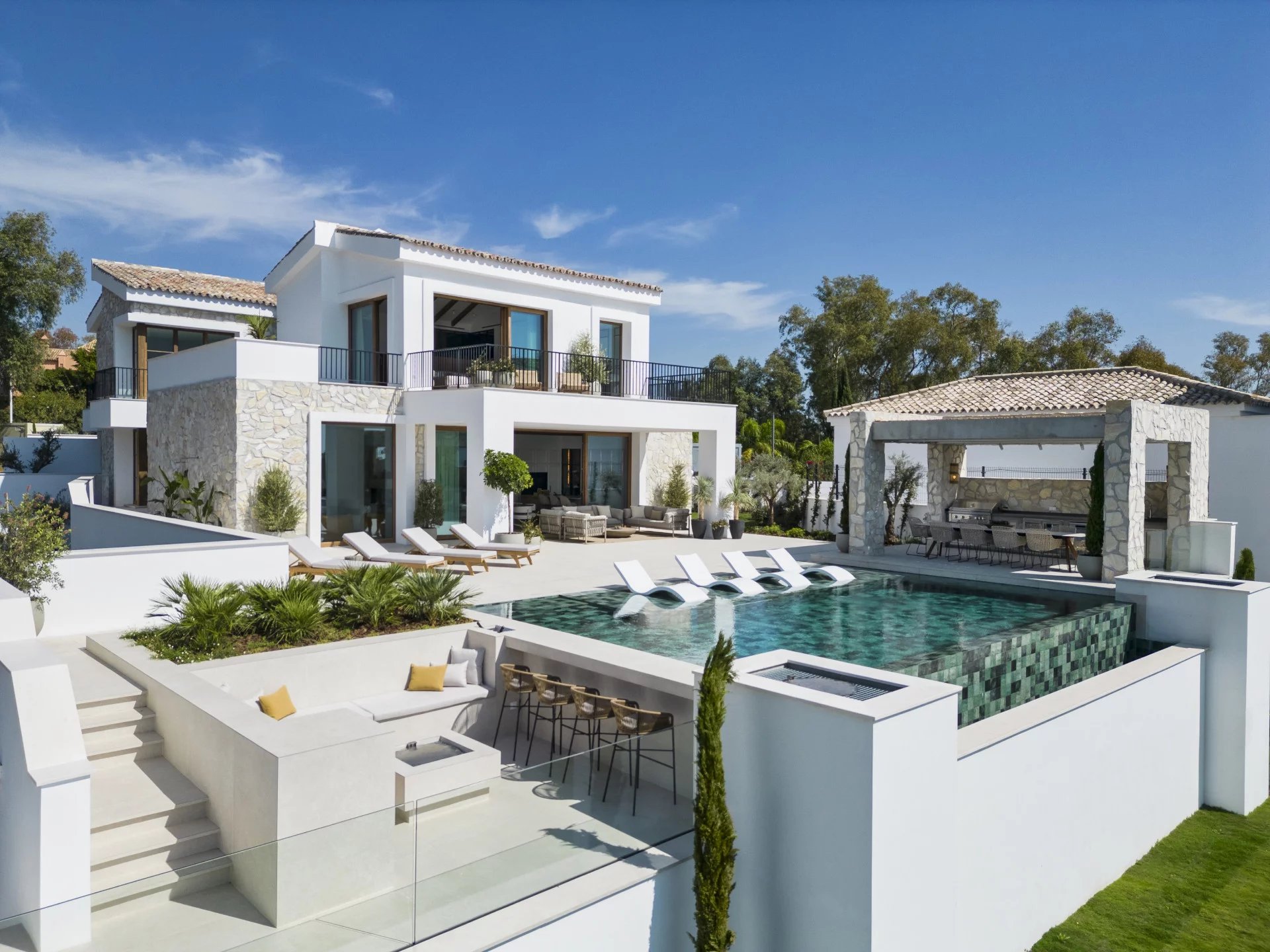 Les espaces extérieurs sont tout aussi impressionnants, avec de grandes terrasses offrant une vie intérieure/extérieure idéale, ainsi que plusieurs coins salons pour manger en plein air et se détendre tout en profitant du beau climat méditerranéen et de la vue sur la mer.