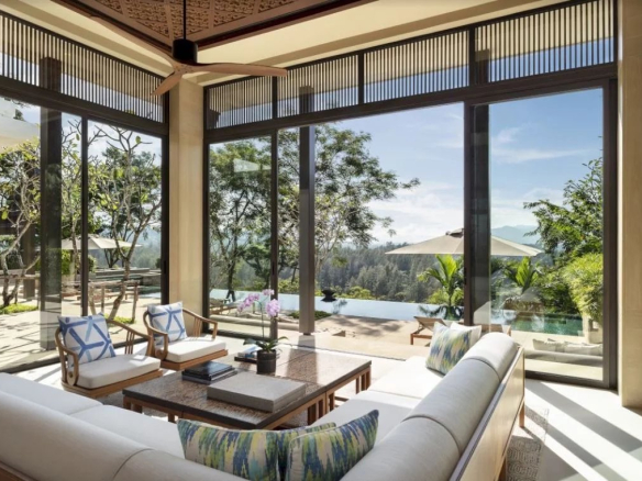 Des ponts panoramiques, une sala aérée et une piscine à débordement de 21 mètres incarnent le meilleur de la vie insulaire, avec une vue imprenable à 180 degrés sur la mer d’Andaman, complétée par de hauts plafonds finement sculptés et de vastes baies vitrées.